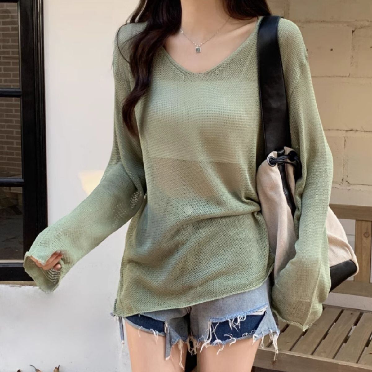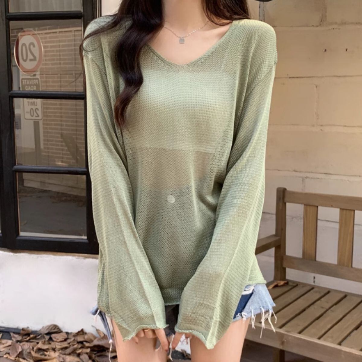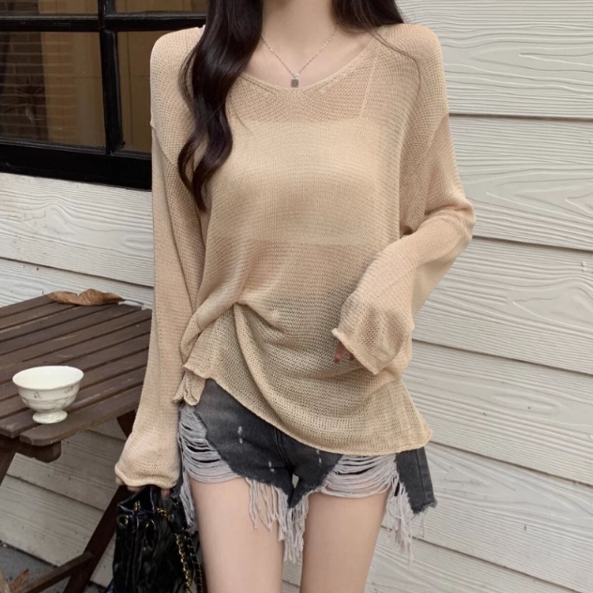 ニット 透かし編み ゆる ゆったり トップス シアー 長袖 透け感 レディース 韓国ファッション セ