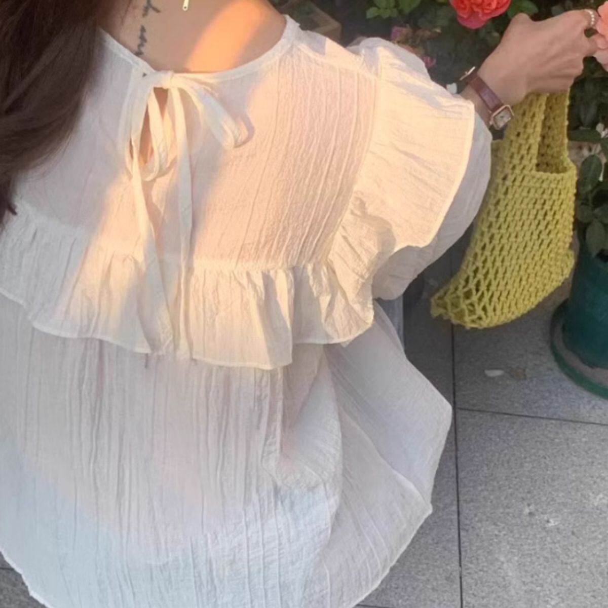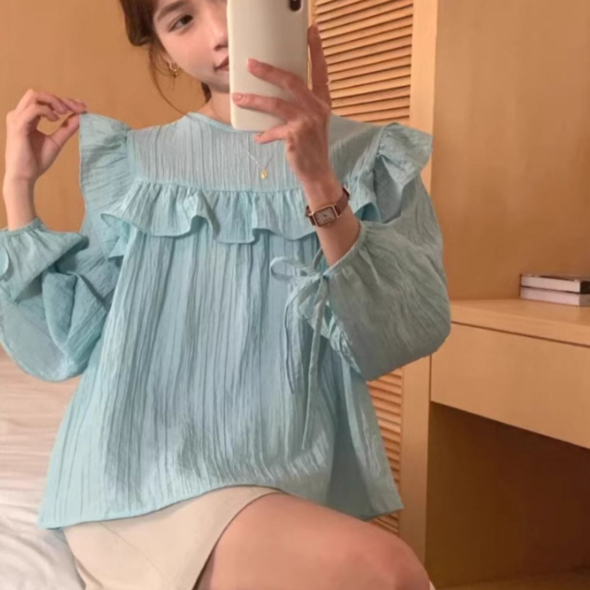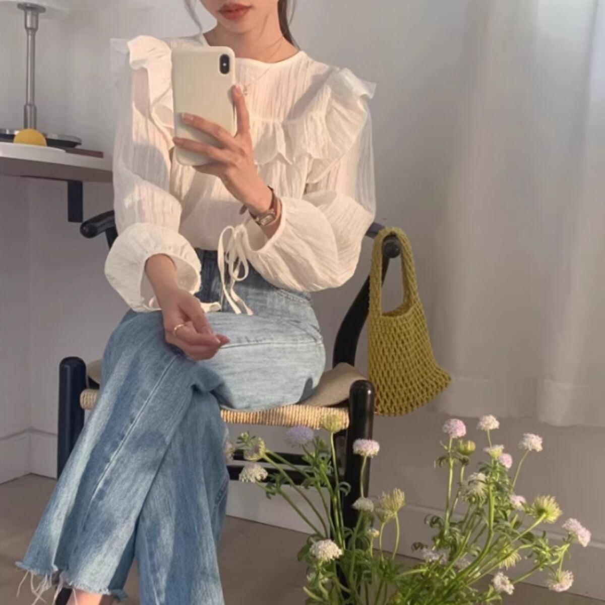 トップス 長袖 シアー フリル リボン かわいい ガーリー 春夏 レディース 韓国ファッション フェ