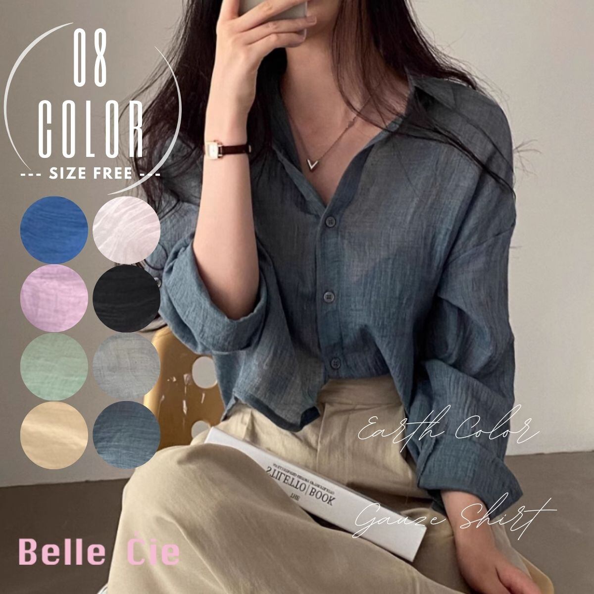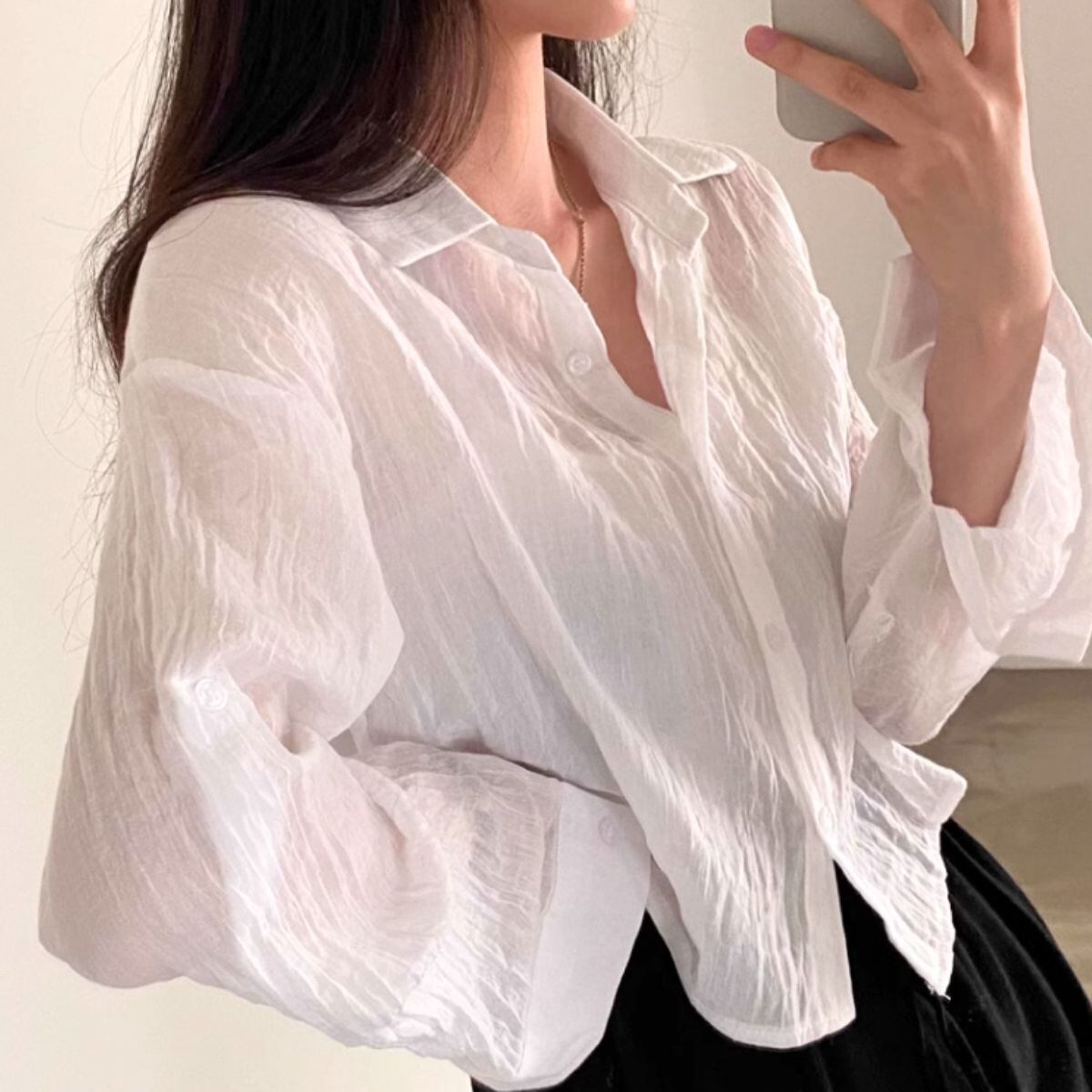 シャツ カーデ カーディガン 羽織り シアー 重ね着 ロールアップ レディース 韓国ファッション シ