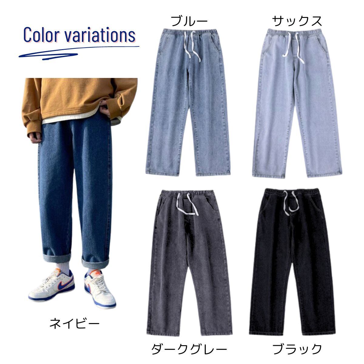 ワイド テーパード ボトム ズボン ジーパン ウエストゴム 楽ちん レディース 韓国 セミワイド ス