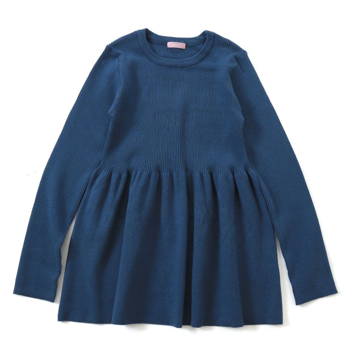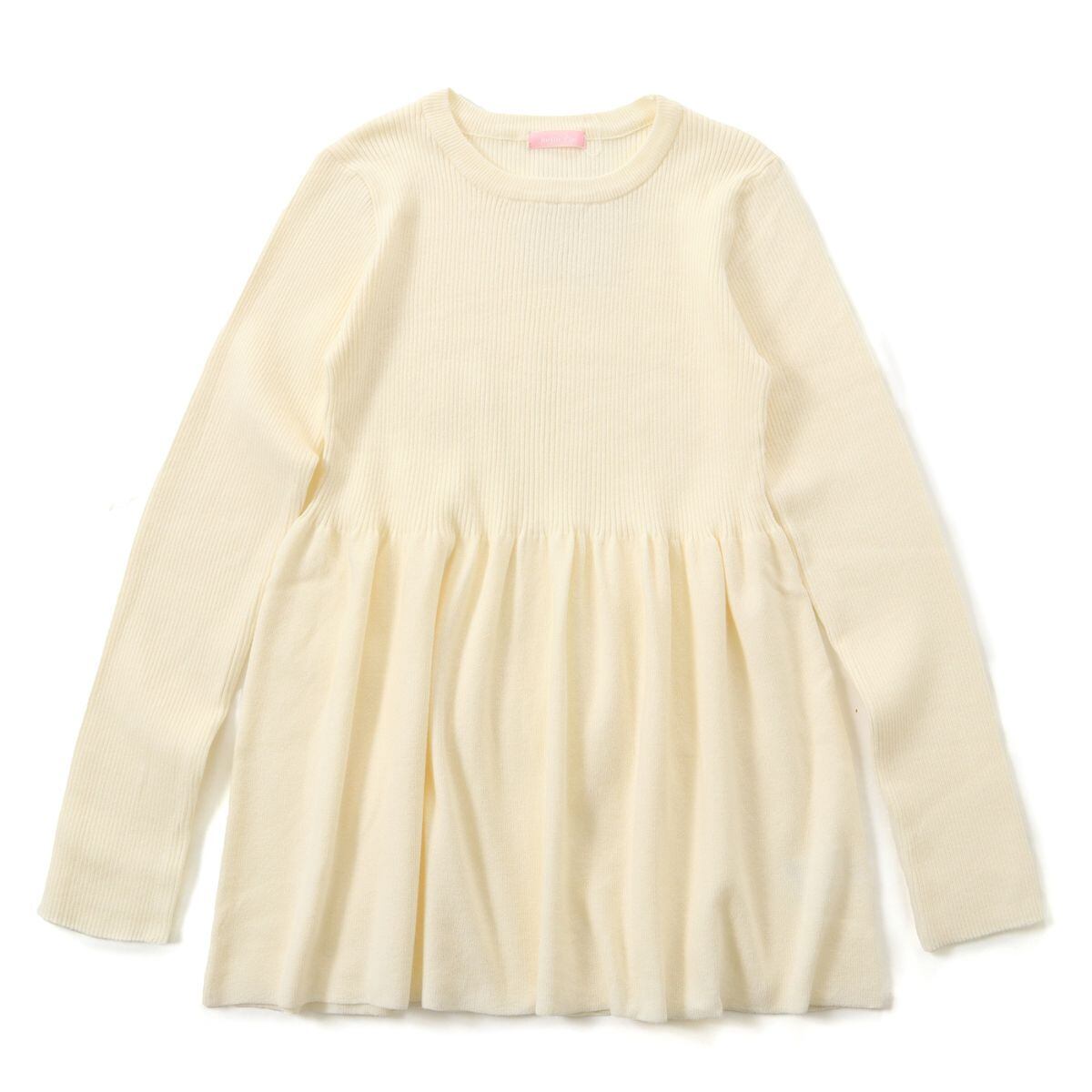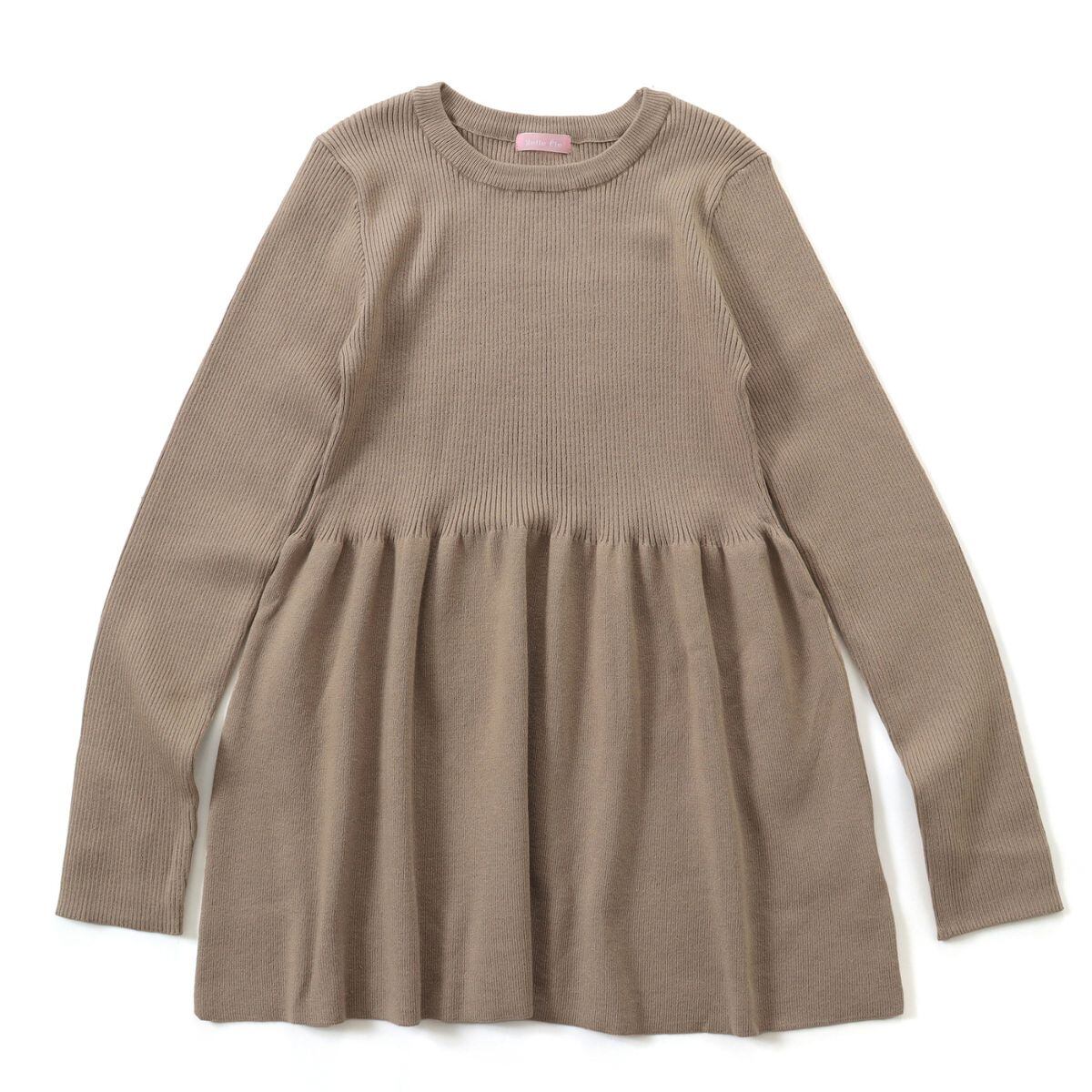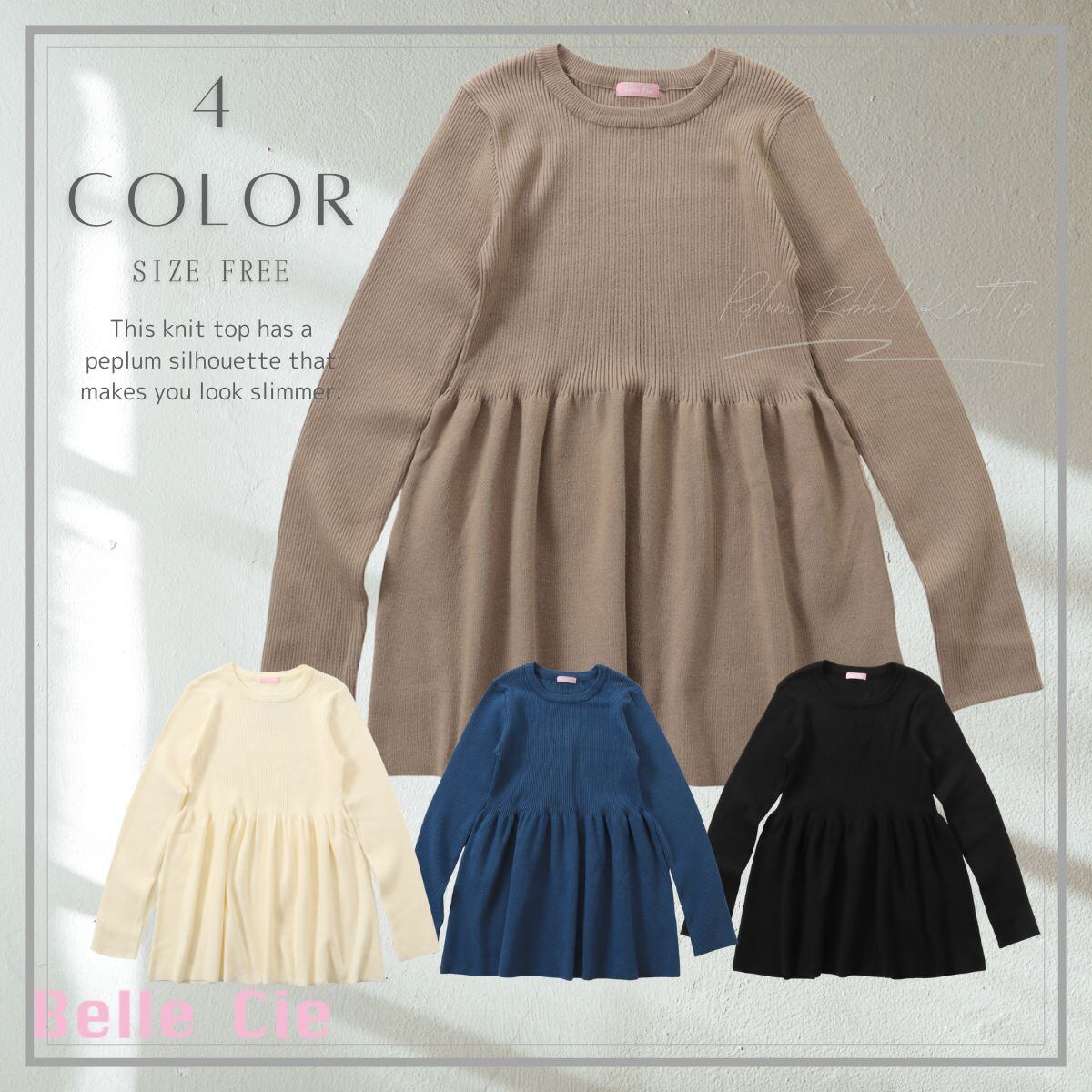 ニット ペプラム チュニック トップス セーター レディース 長袖 ラウンドネック シンプル おしゃ