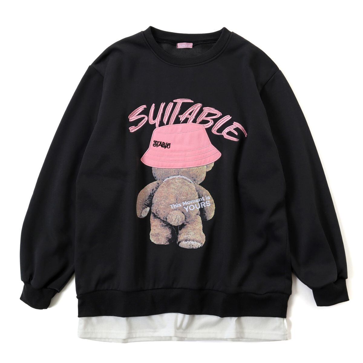 バケハ くま スウェット トレーナー 長袖 トップス 裏起毛 プルオーバー イラスト アニマル レデ