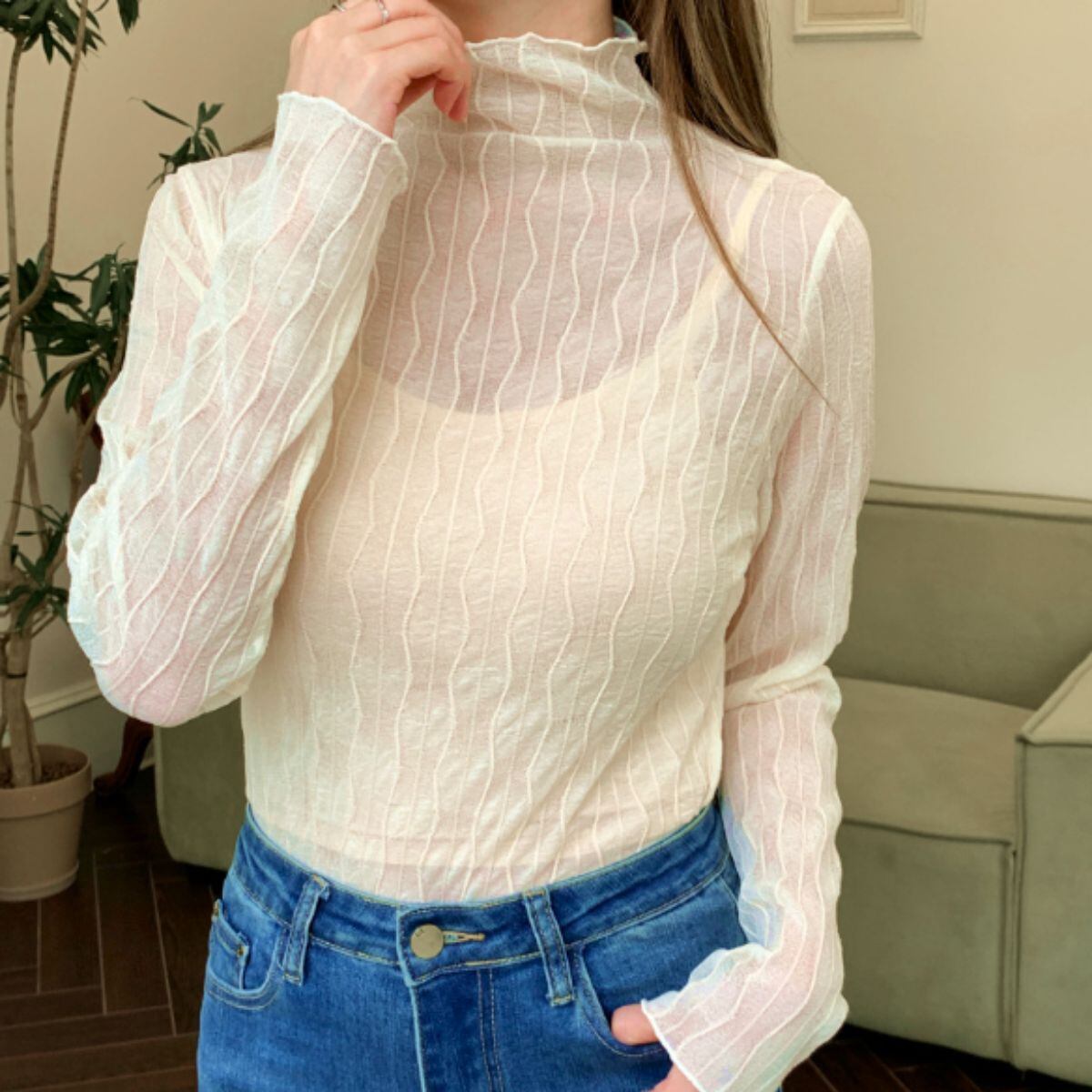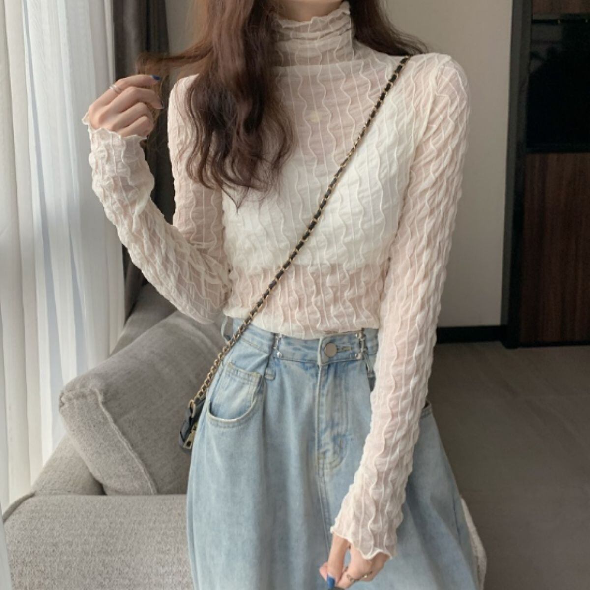 シアートップス ハイネック 長袖 透け感 インナー シースルー レディース 重ね着 かわいい おしゃ