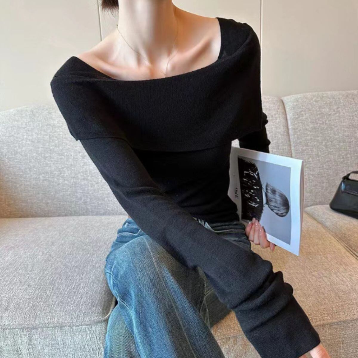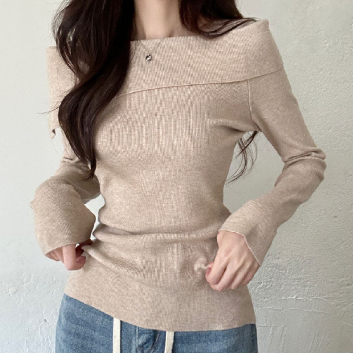 ニット 長袖 ボートネック オフショル レディース プルオーバー トップス リブニット 無地 セータ