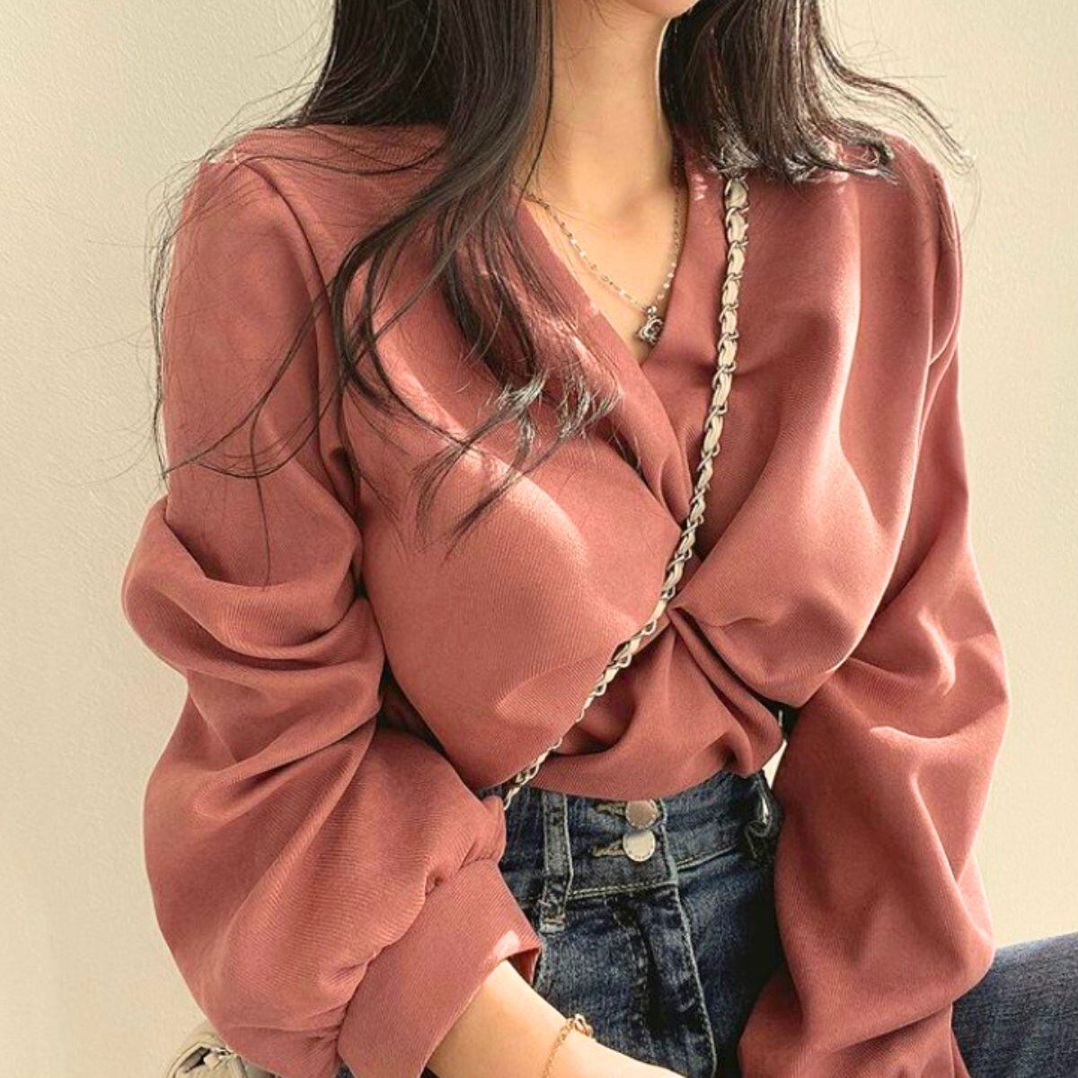 トップス ブラウス カシュクール Vネック 長袖 上品 きれいめ レディース 韓国ファッション シ