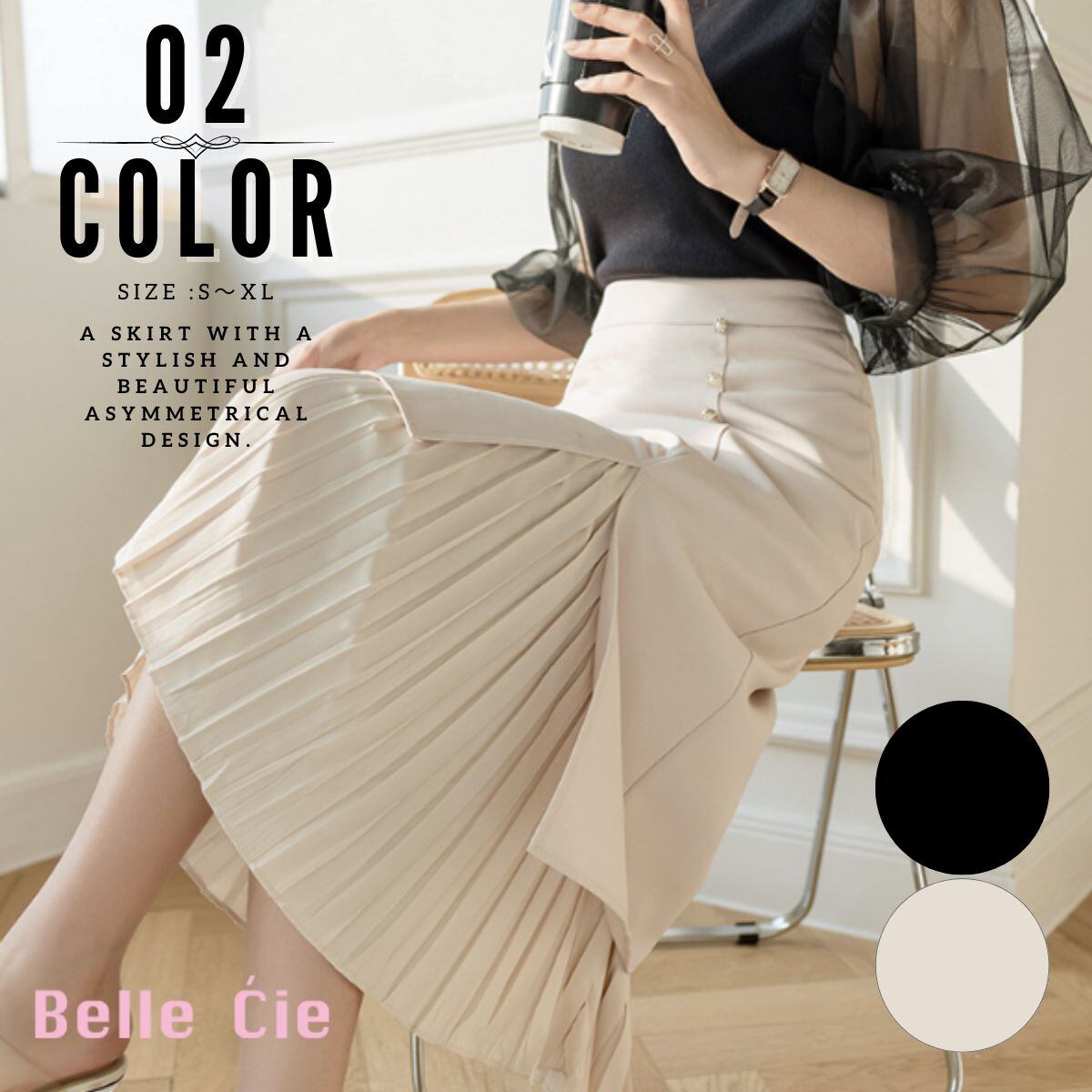 スカート プリーツ タイト きれいめ フォーマル 上品 アシメ レディース 韓国ファッション 入学式