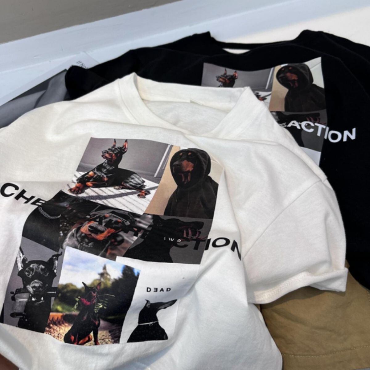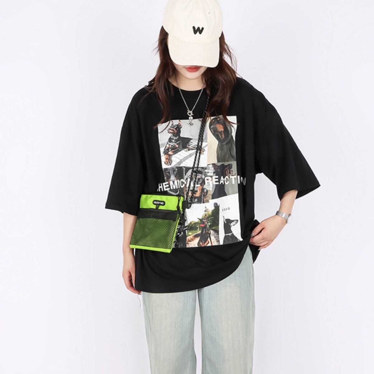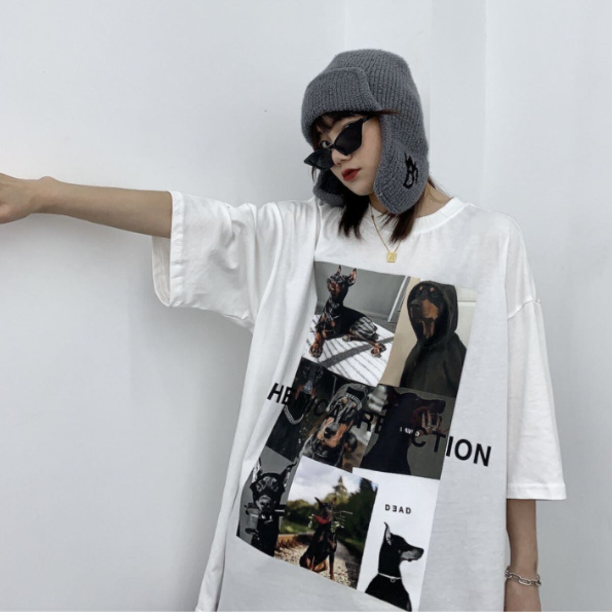 Tシャツ 半袖 トップス プリント 転写 シンプル ロゴ 白 黒 レディース 韓国ファッション カジ