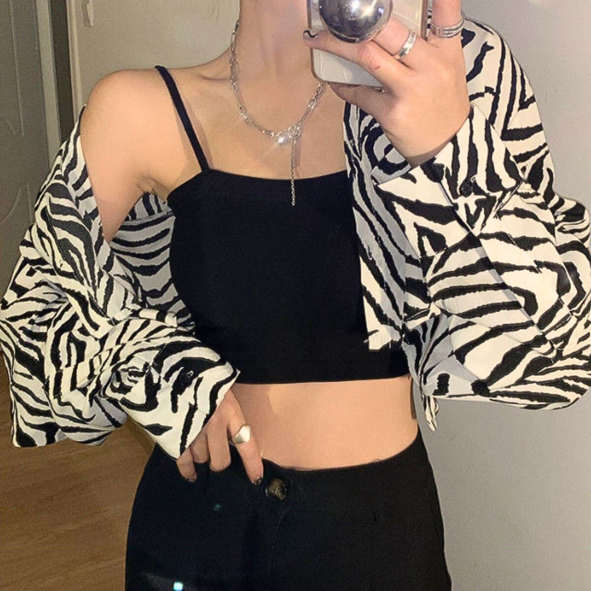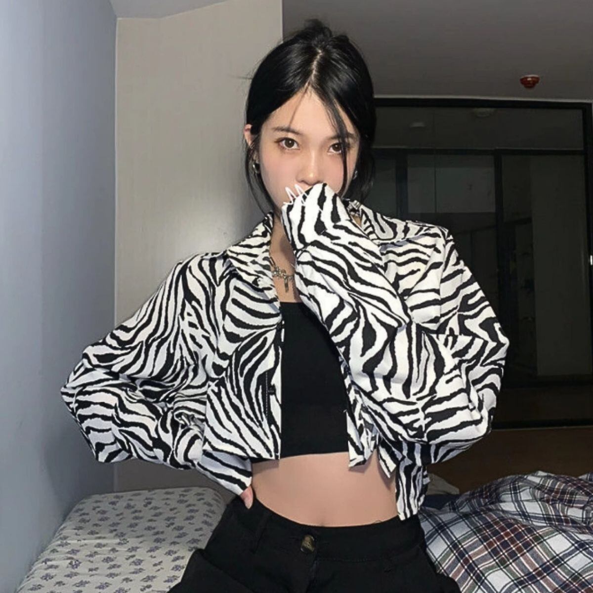 シャツ 長袖 ショート丈 短丈 アニマル ゼブラ レオパード 豹 レディース 韓国ファッション 羽織