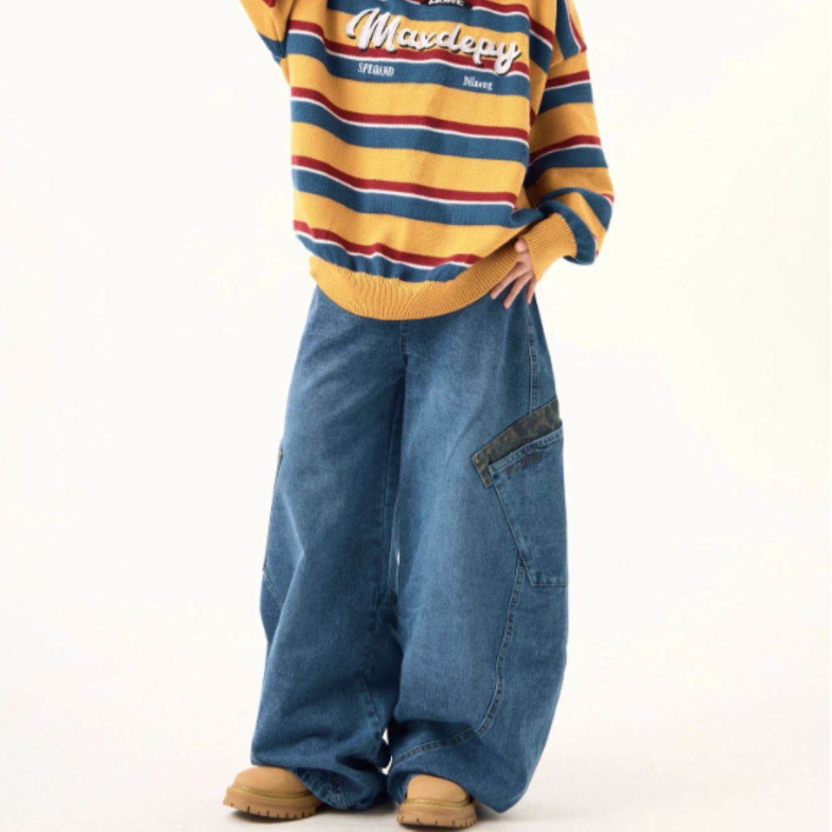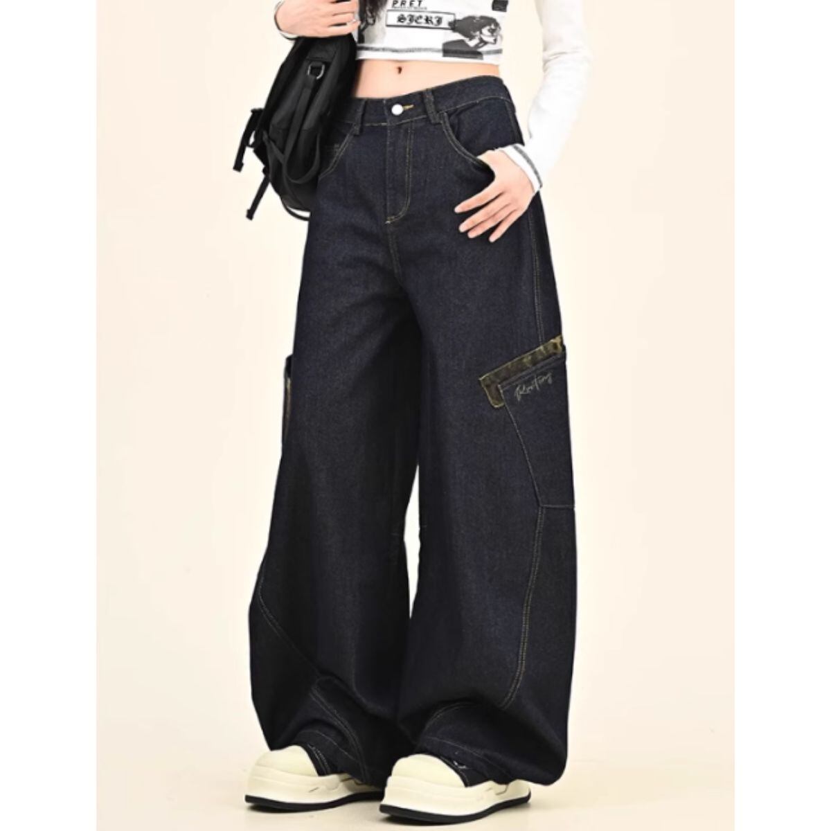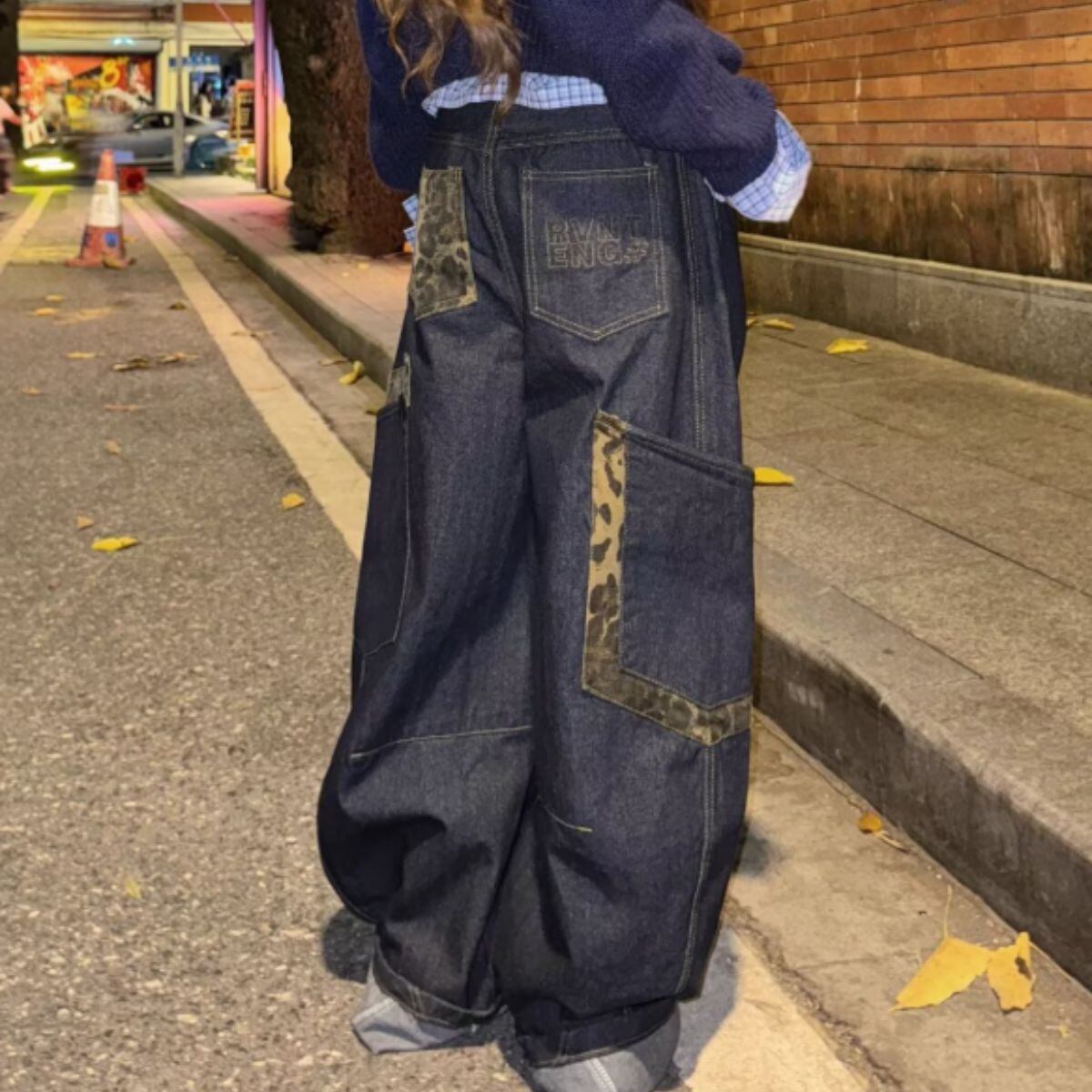 デニム ロングパンツ バレルレッグ レオパード ジーンズ ジーパン レディース 韓国ファッション カ
