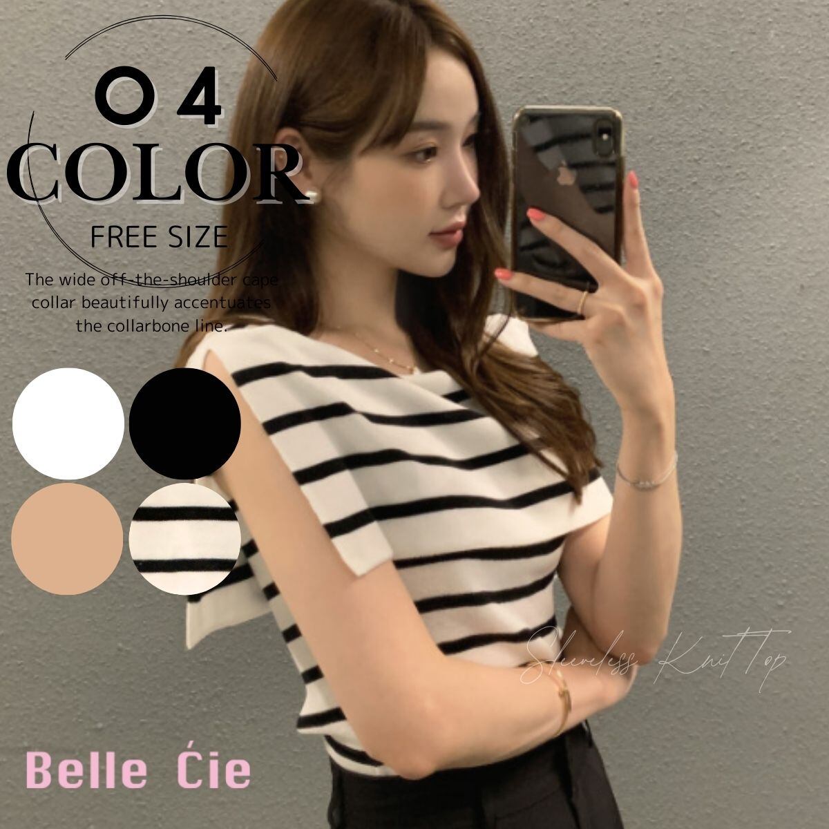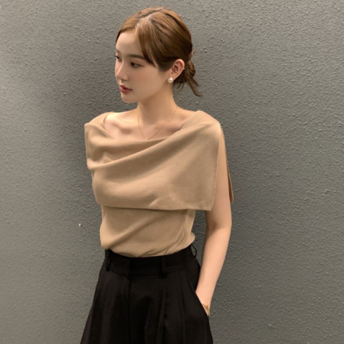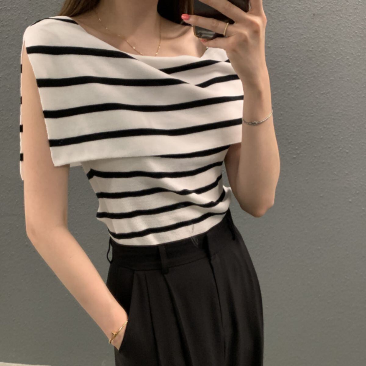 ニット ノースリーブ ケープカラー トップス きれいめ 上品 春秋 レディース 韓国ファッション セ