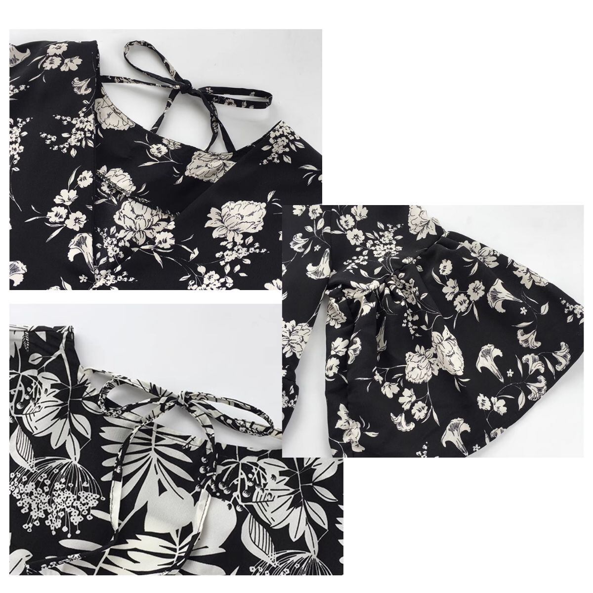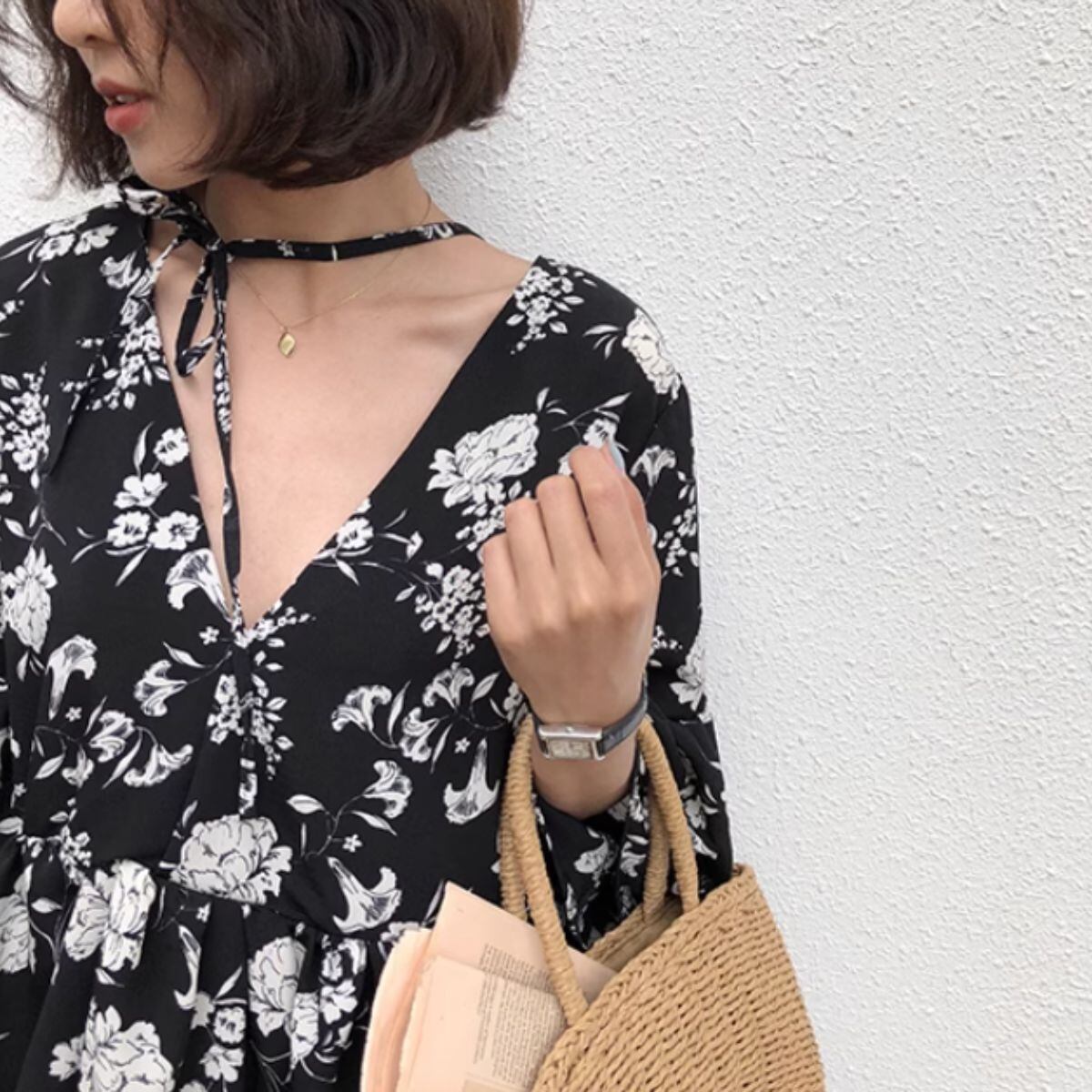 ブラウス チュニック ワンピース 半端袖 5分袖 春夏 ボタニカル レディース 韓国ファッション フ