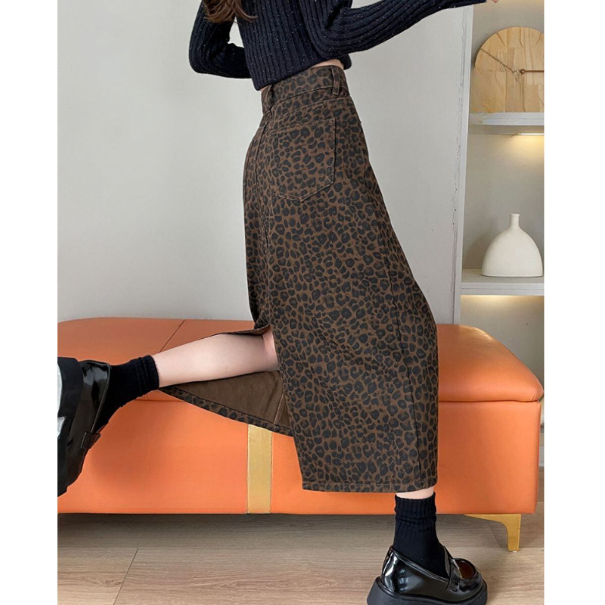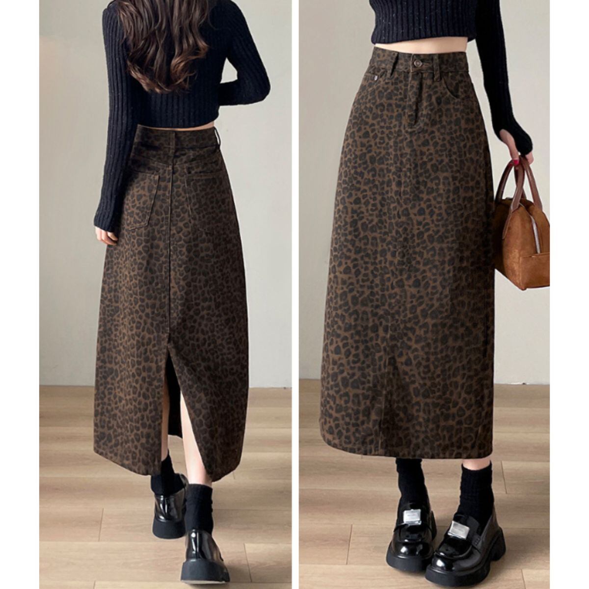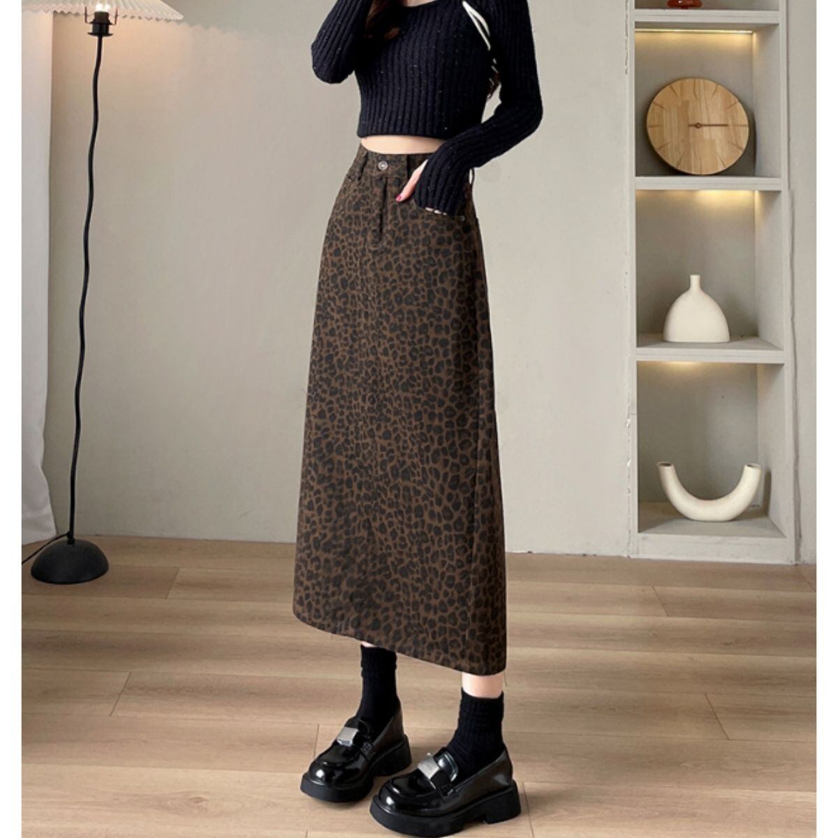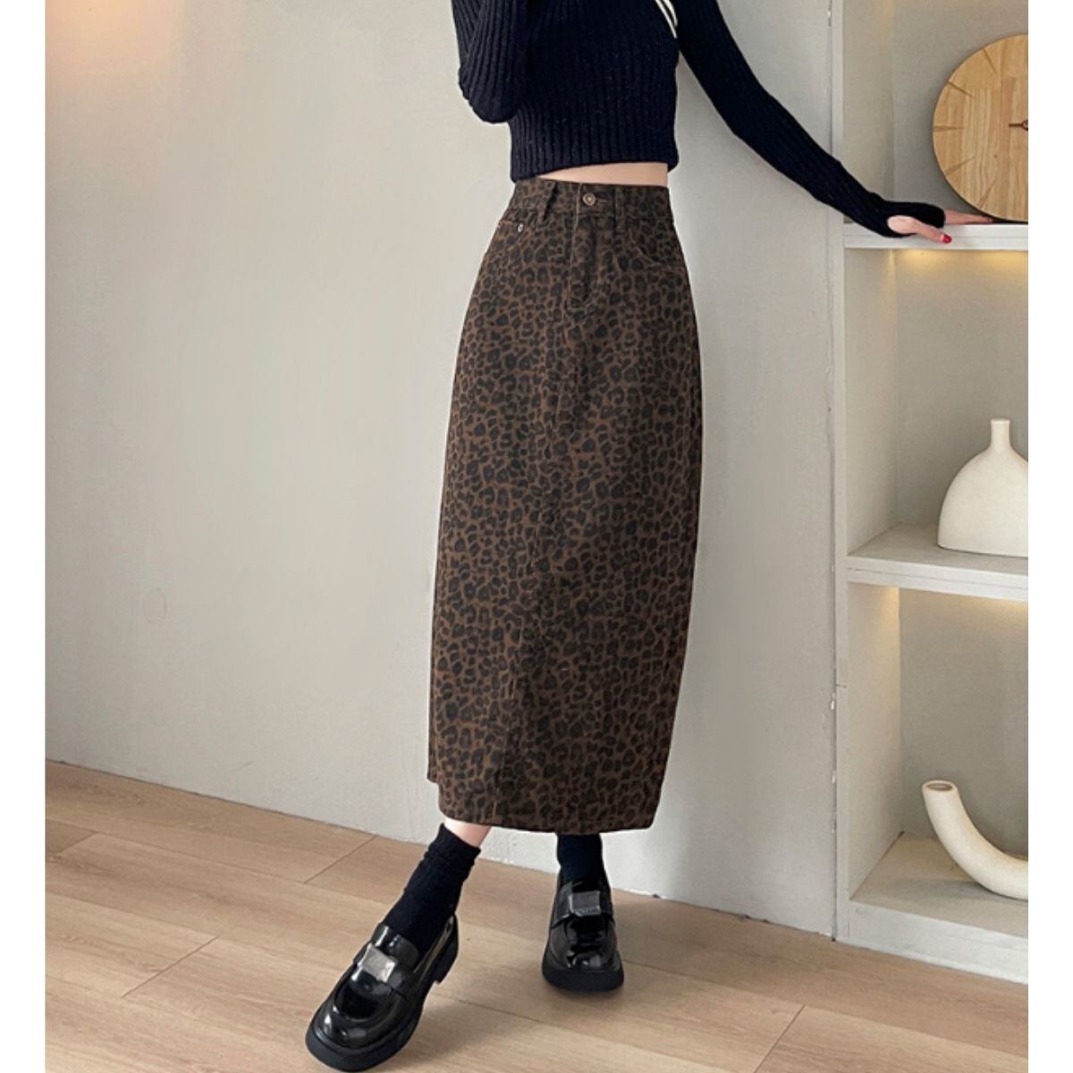 ボトム スカート ロングスカート ストレート レオパード ヒョウ レディース 韓国ファッション 豹