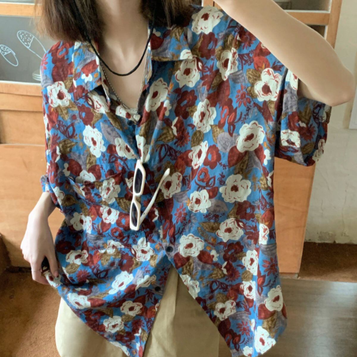 花柄 シャツ レディース 柄シャツ 半袖 半袖シャツ ブラウス 韓国ファッション 夏 トップス レト