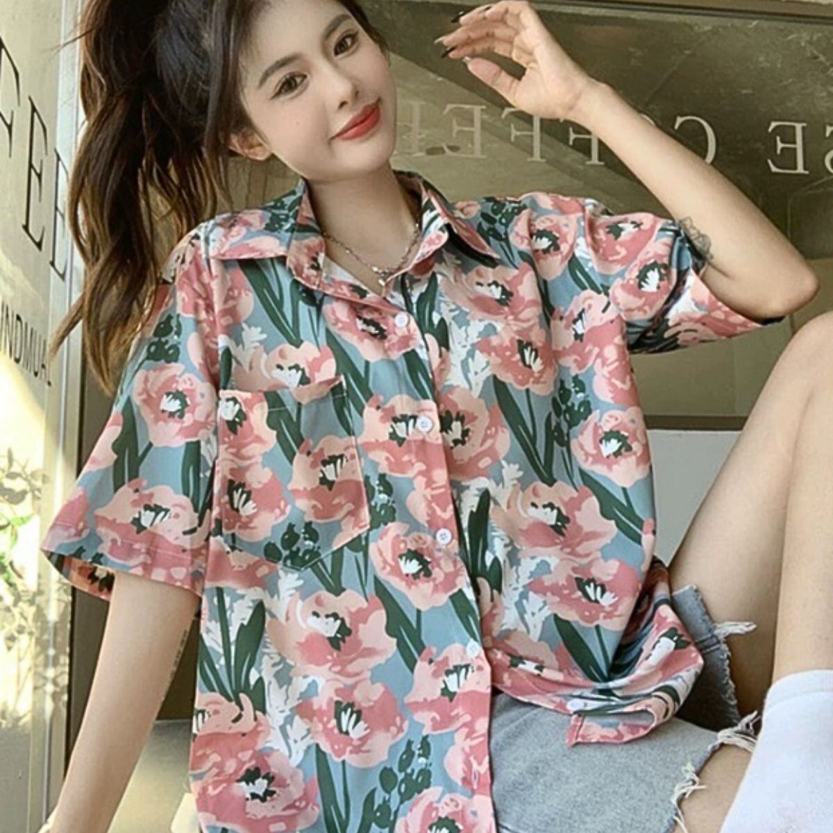 花柄 シャツ レディース 柄シャツ 半袖 半袖シャツ ブラウス 韓国ファッション 夏 トップス レト
