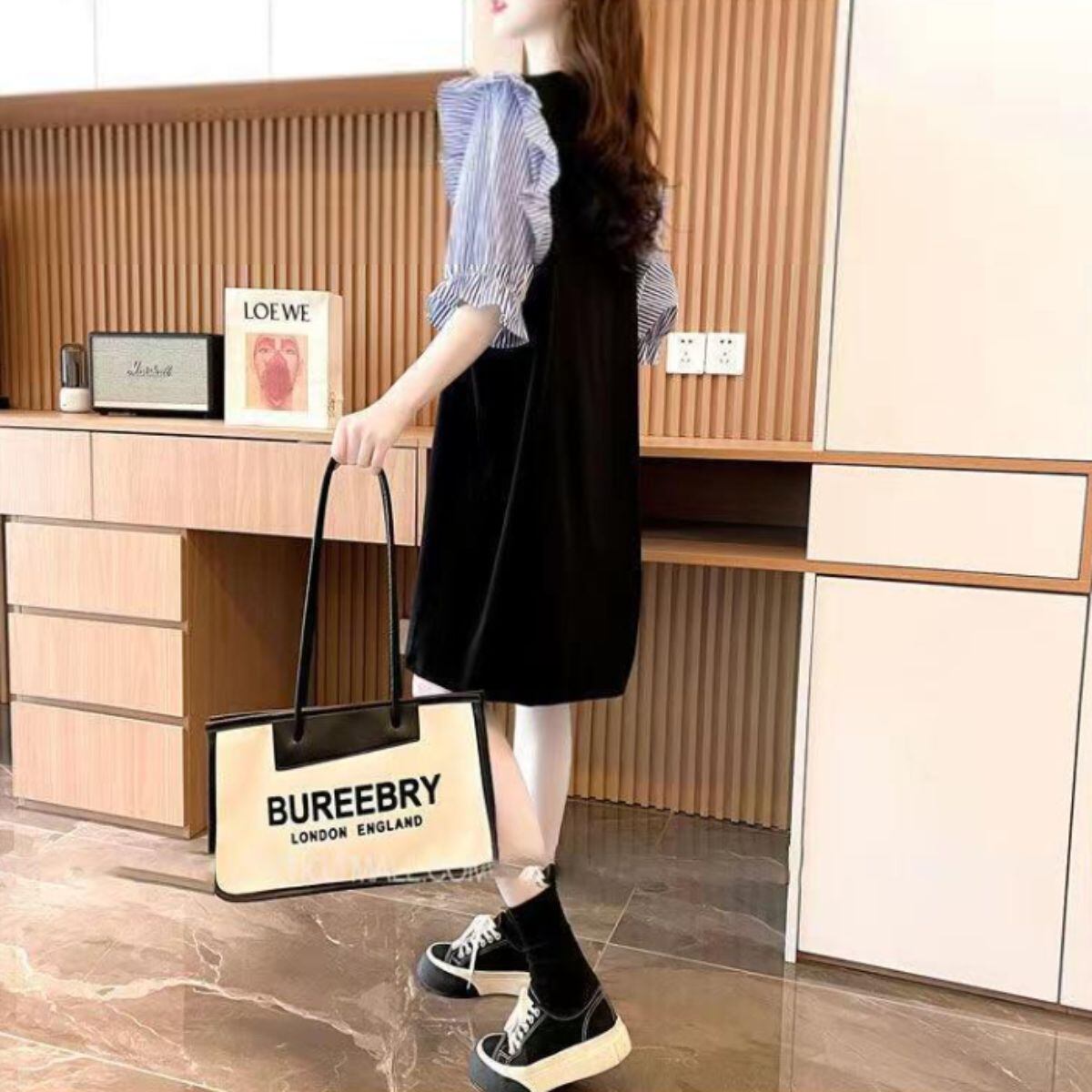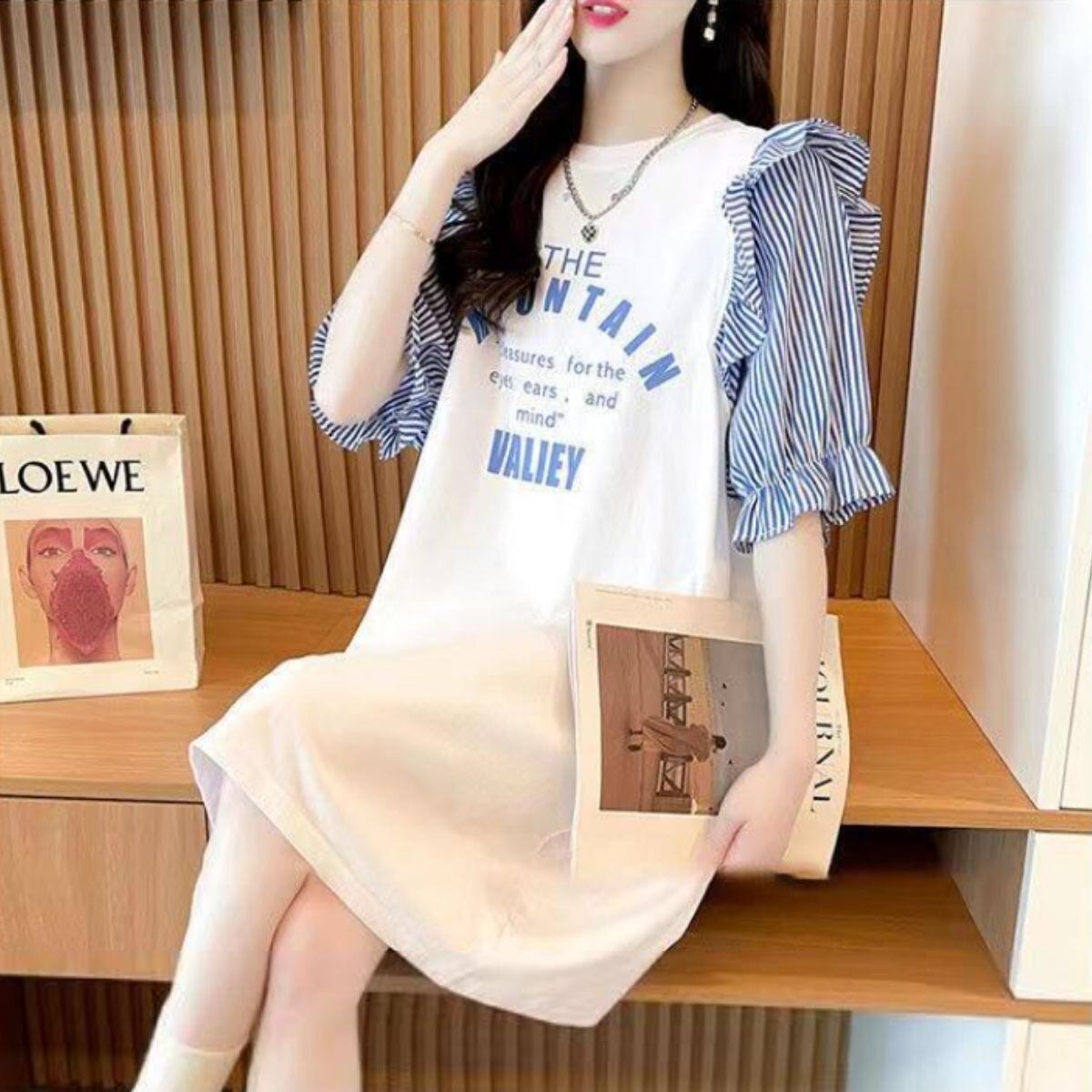 ワンピース 半袖 ミニワンピース Aライン 異素材 ロゴ 切り替え レディース ボリューム袖
