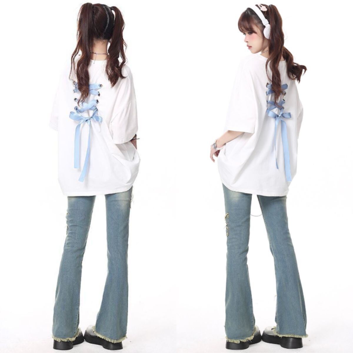 Tシャツ トップス 半袖 サブカル系 地雷系 リボン 原宿系 夏 レディース 韓国ファッション おし