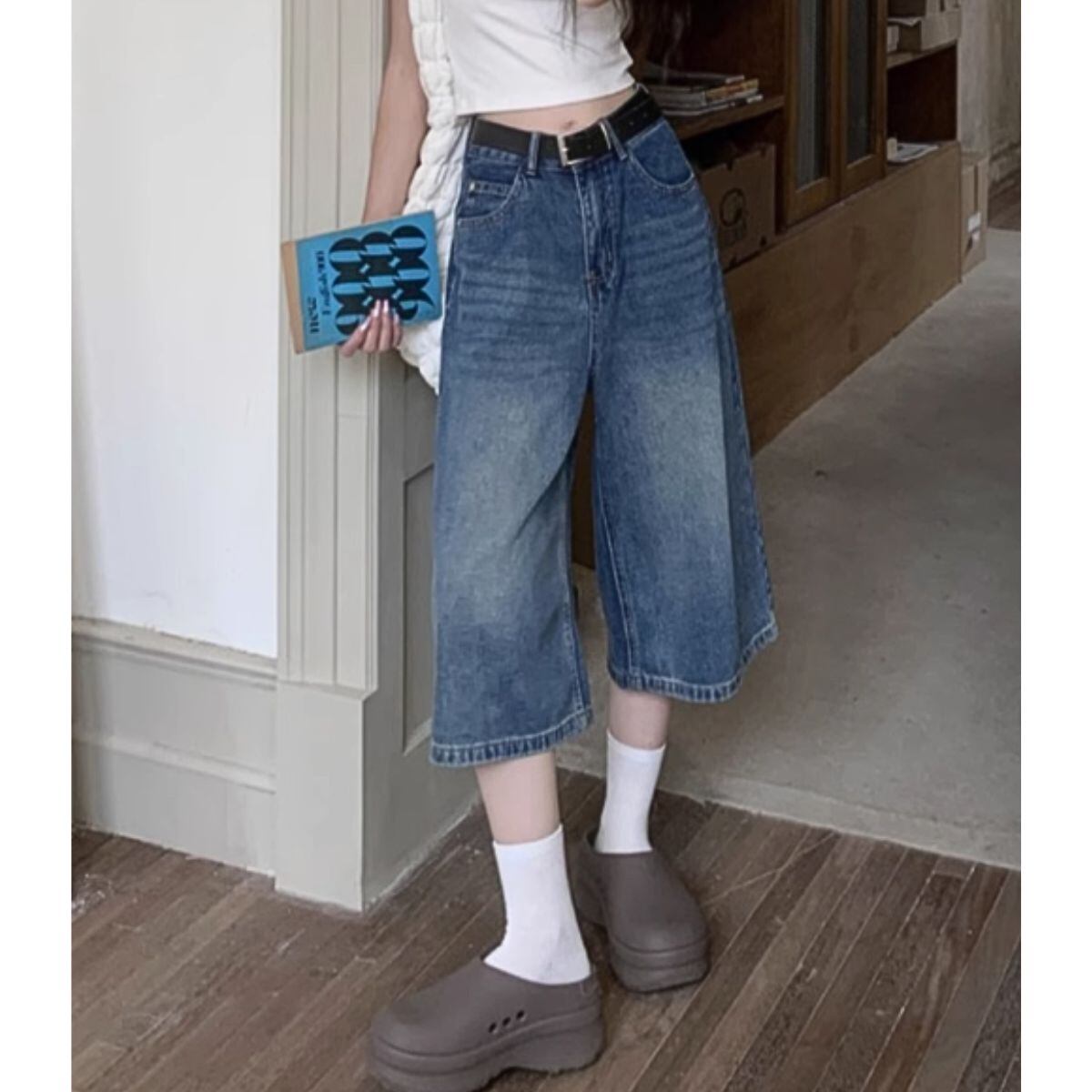 デニム ハーフパンツ デニムパンツ ガウチョ 半端丈 フレア 夏 レディース 韓国ファッション スト