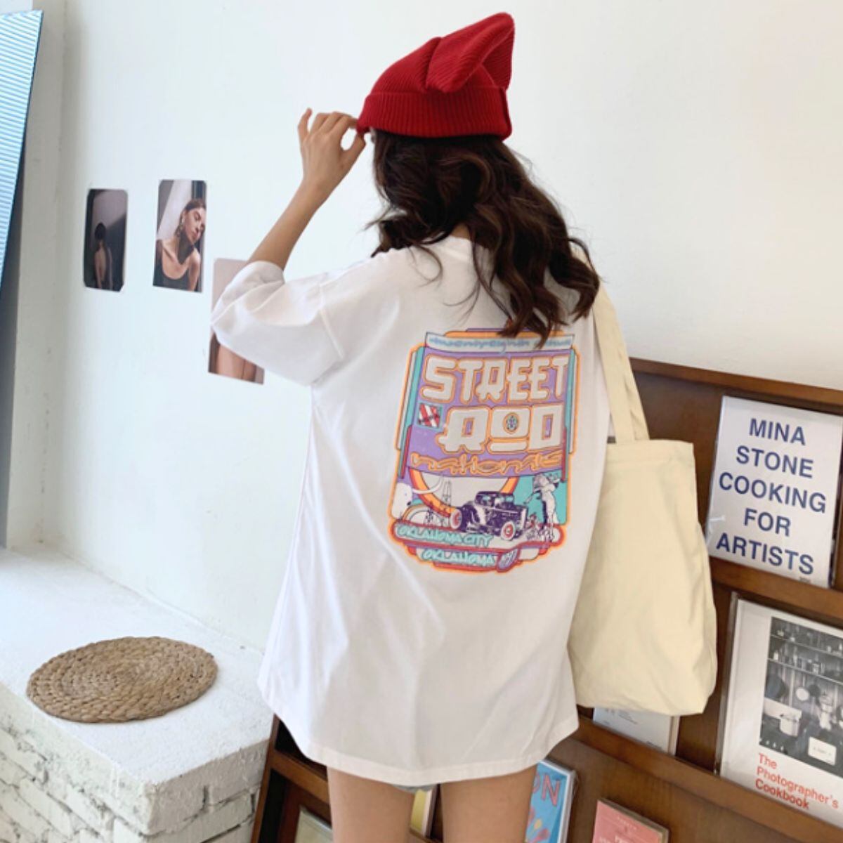 Tシャツ 半袖 5分袖 プリント ビンテージ感 POP カジュアル レディース ポップ トップス オ