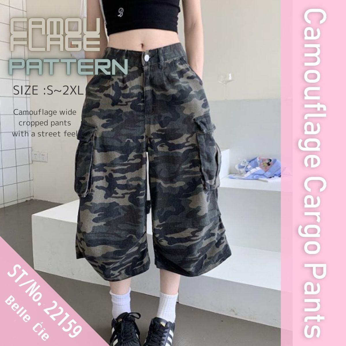 カーゴパンツ ハーフパンツ ボトムス ワイド 迷彩 ストリート レディース 韓国ファッション