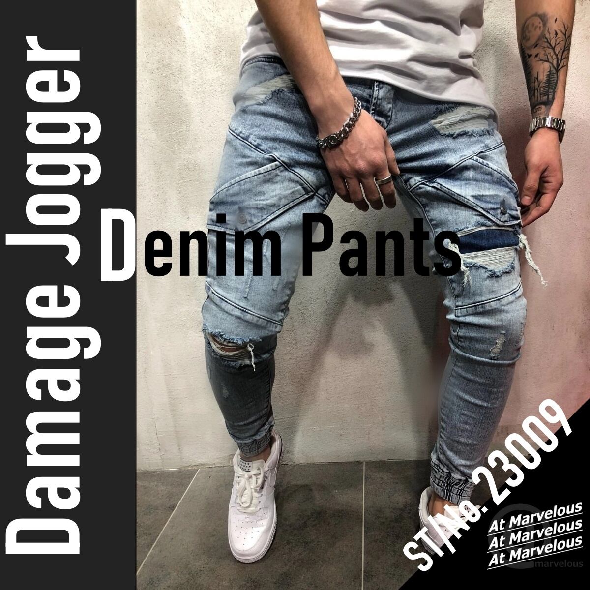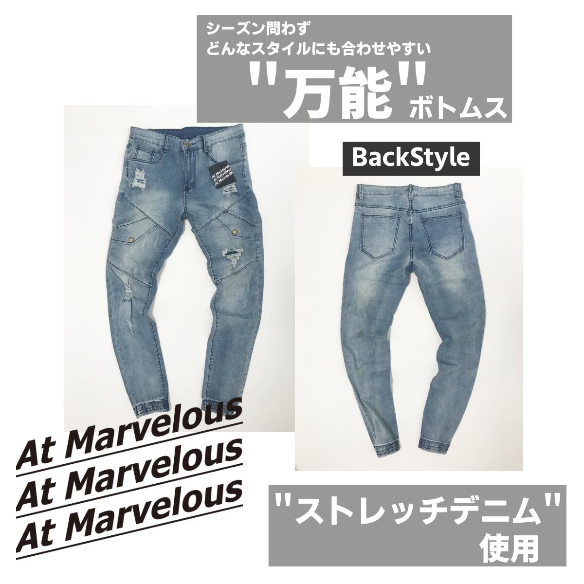デニムジョガーパンツ メンズ ジョガーパンツ ダメージ ジーンズ ダメージデニム ストレッチジーンズ