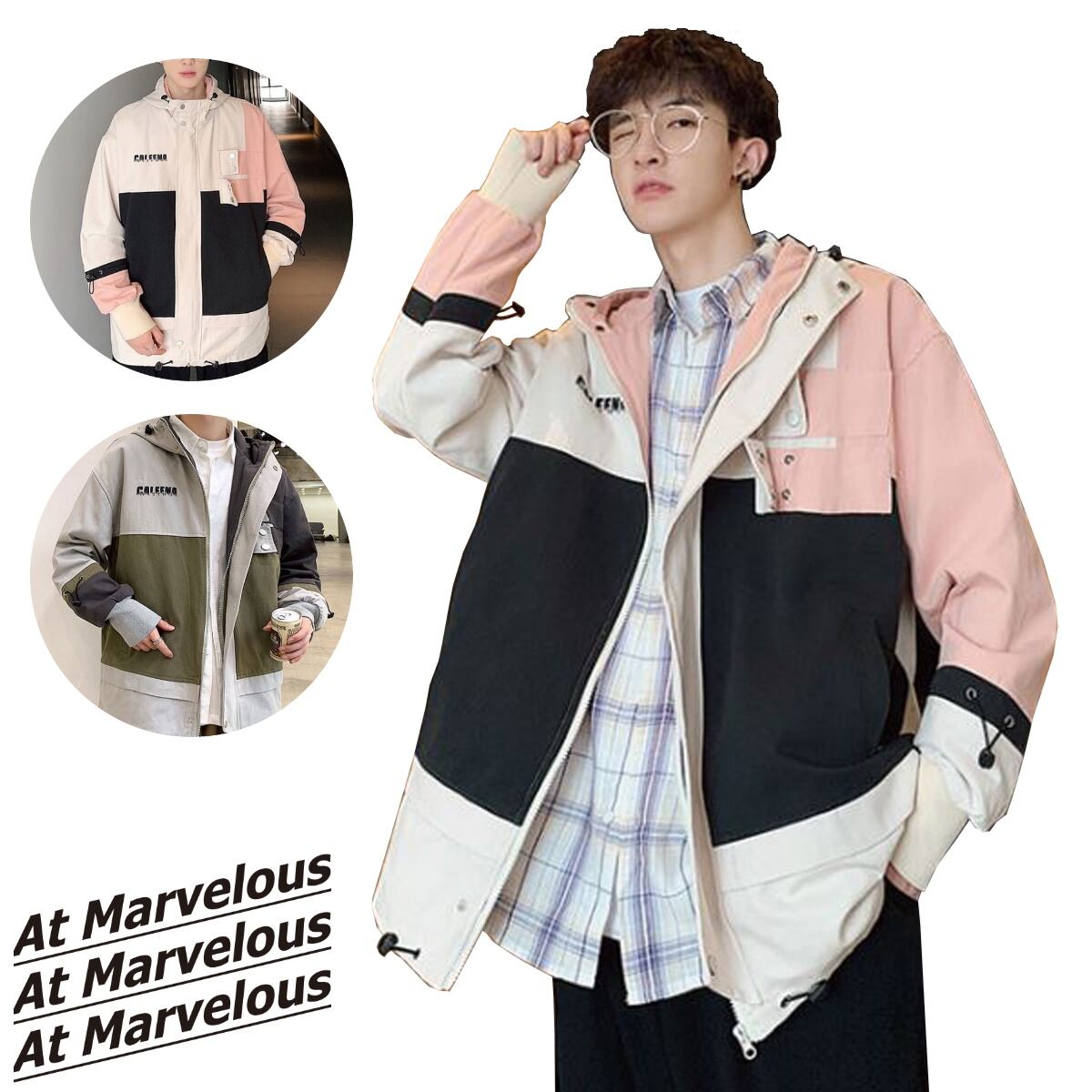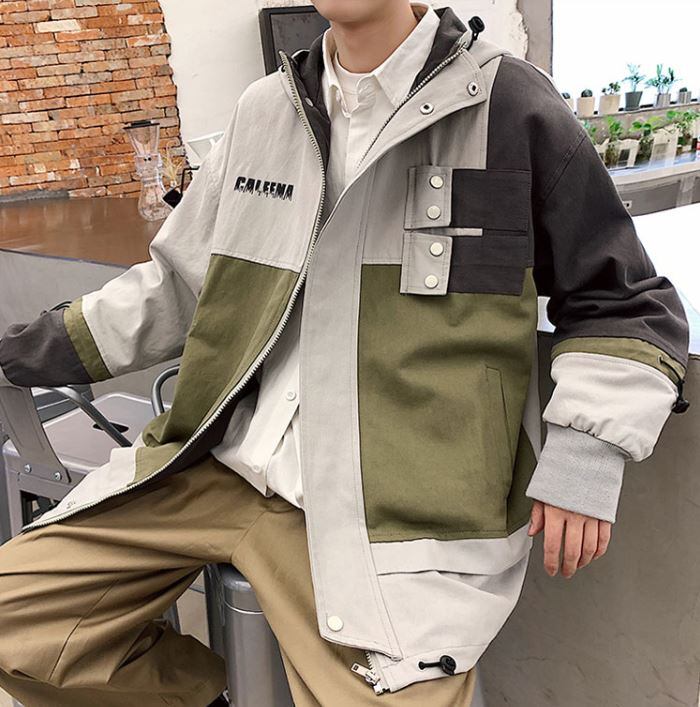 メンズ アウター カラーブロッキング ブルゾン ジャケット ストリート 韓国ファッション ジップアッ