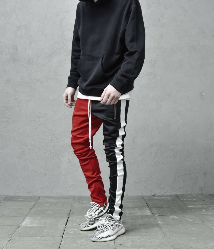 ラインパンツ メンズ ジップ使い アシメカラー スウェットパンツ メンズスエットパンツ スエットパン