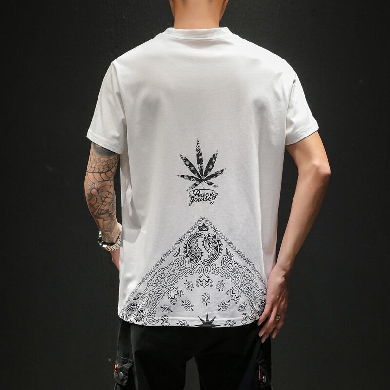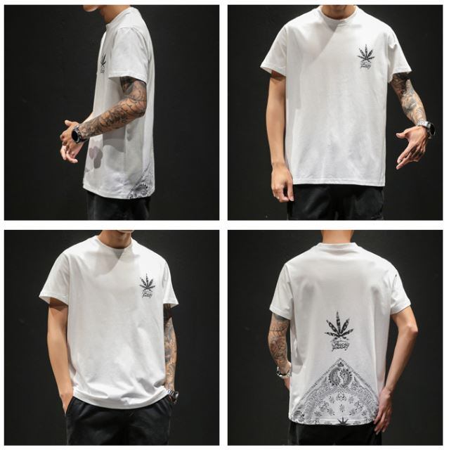 ペイズリーTシャツ 半袖 バンダナ柄 ストリートファッション バックプリント ヘンプ 半袖 トップス