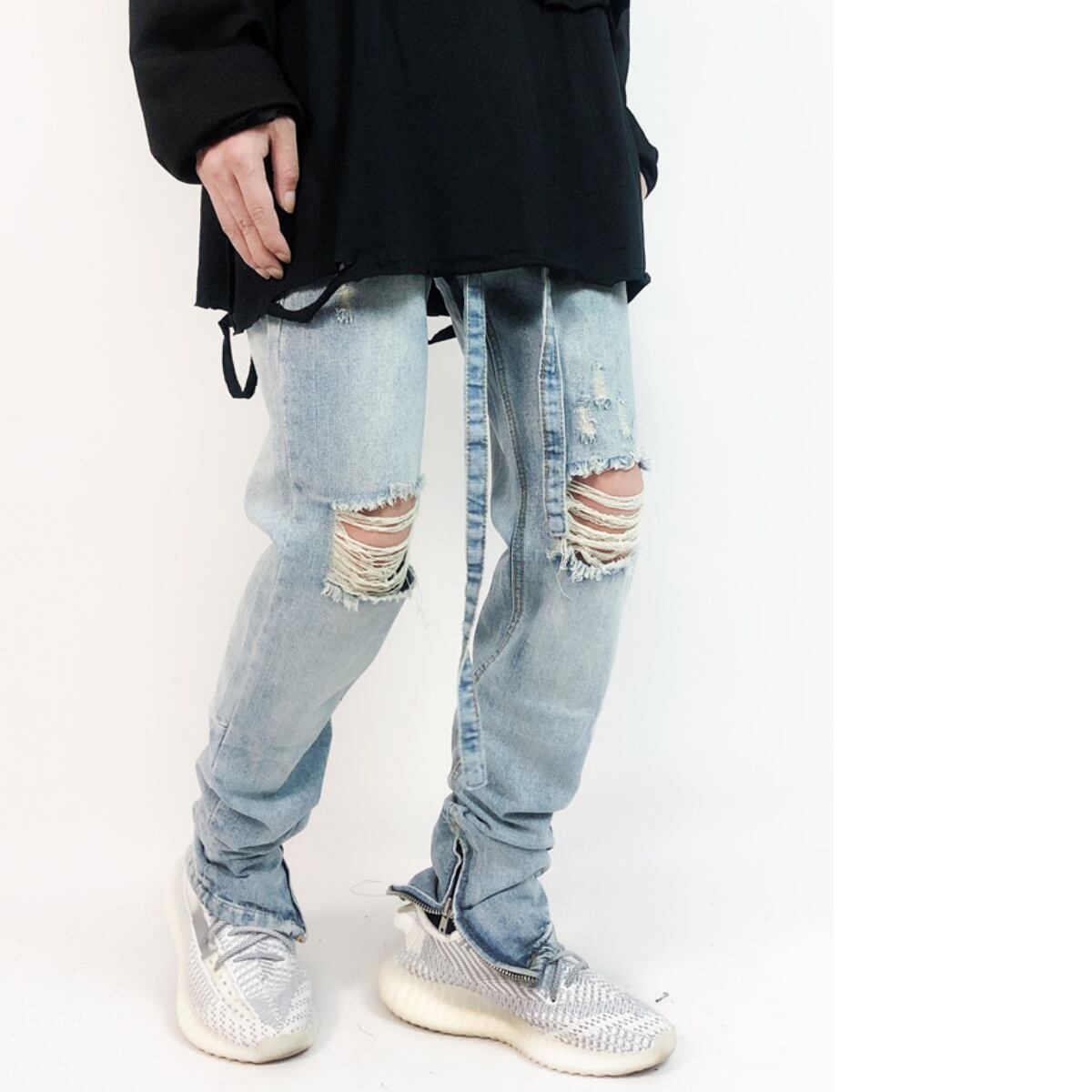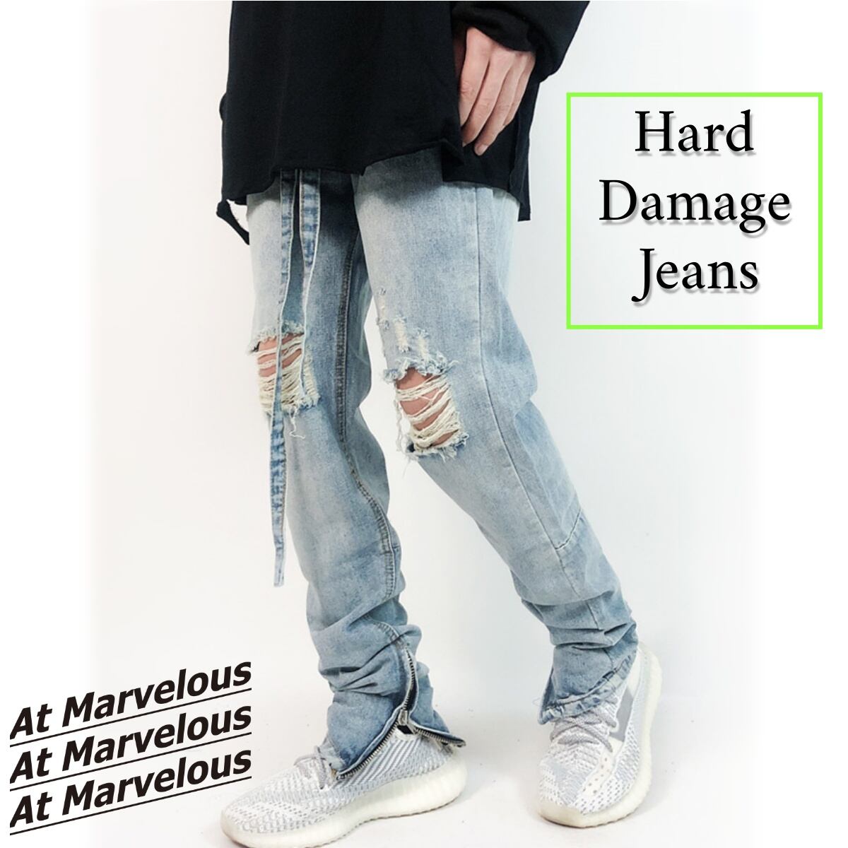 クラッシュ加工 ダメージ デニムパンツ ストリート ファッション メンズ ジーンズ オールシーズン