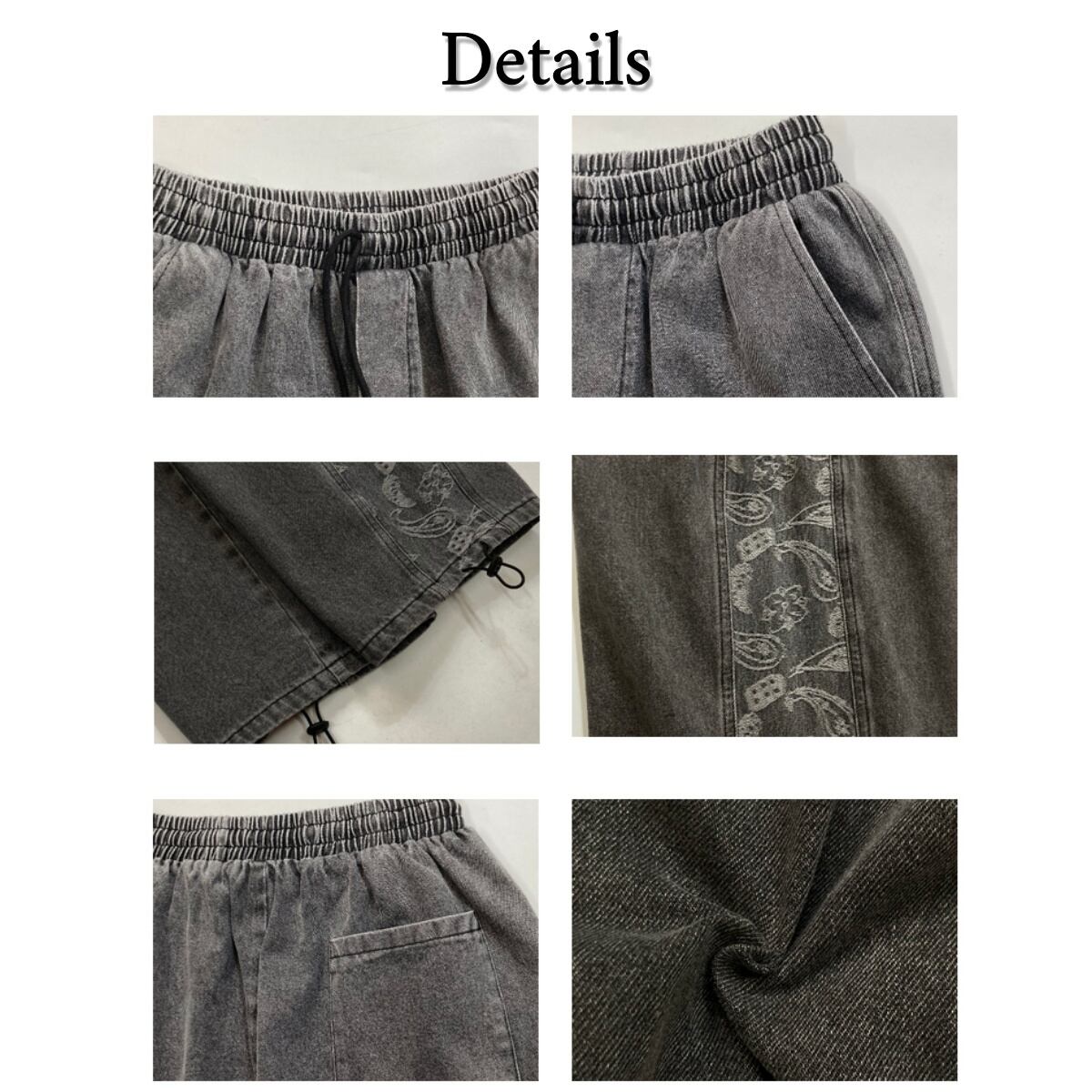 ペイズリー配色デニムパンツ ストリートファッション メンズ ジーンズ ジョガーパンツ イージーパンツ
