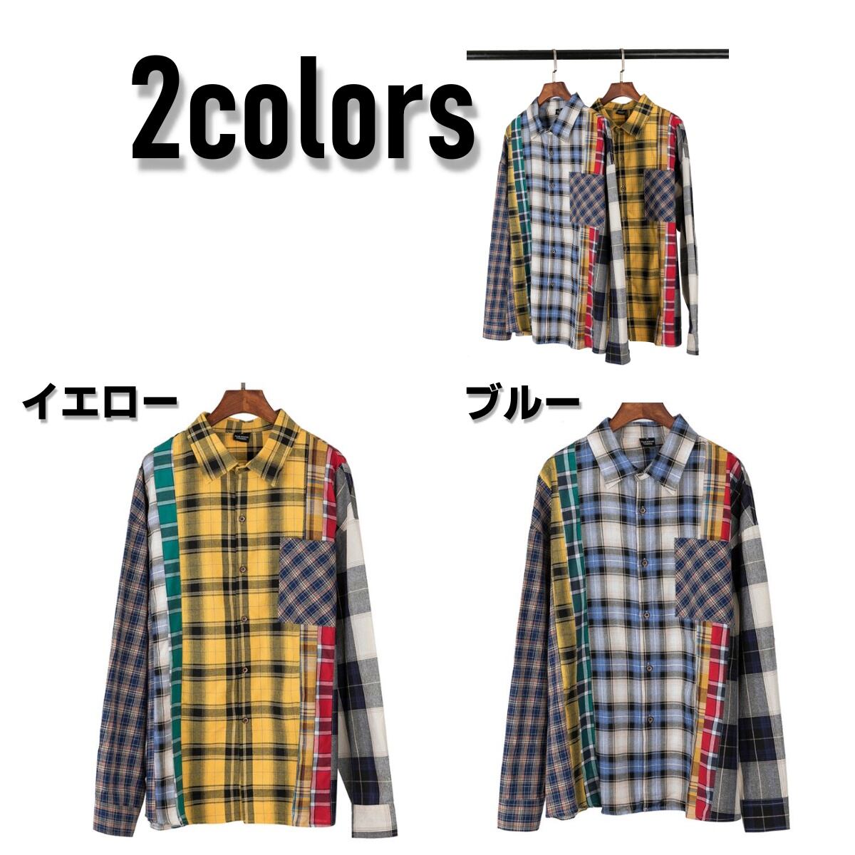 クレイジーパターンシャツ メンズ ストリートファッション チェックシャツ パッチワーク カジュアル