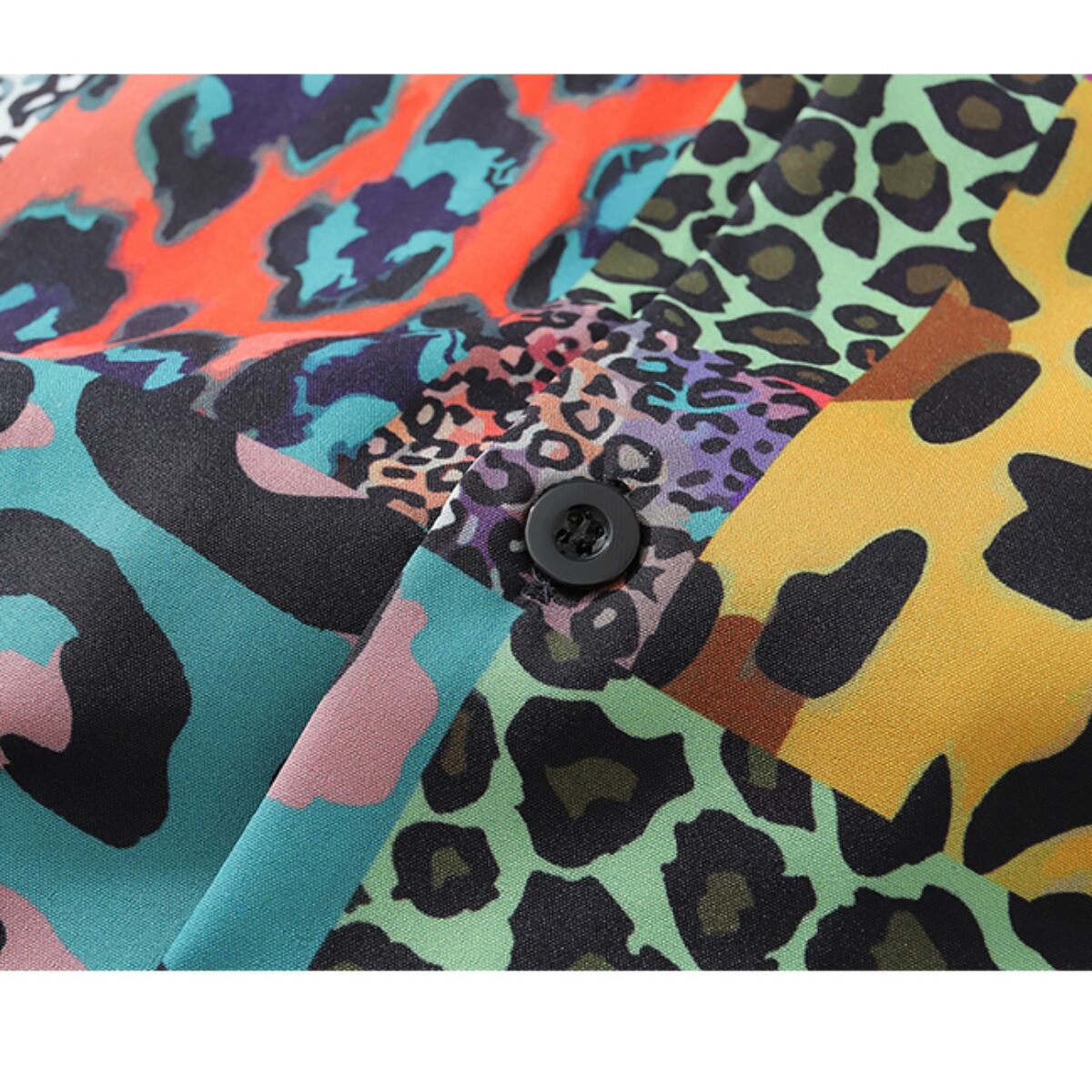 アニマル切り替え クレイジーパターン シャツ メンズ パネル アシンメトリー ストリートファッション