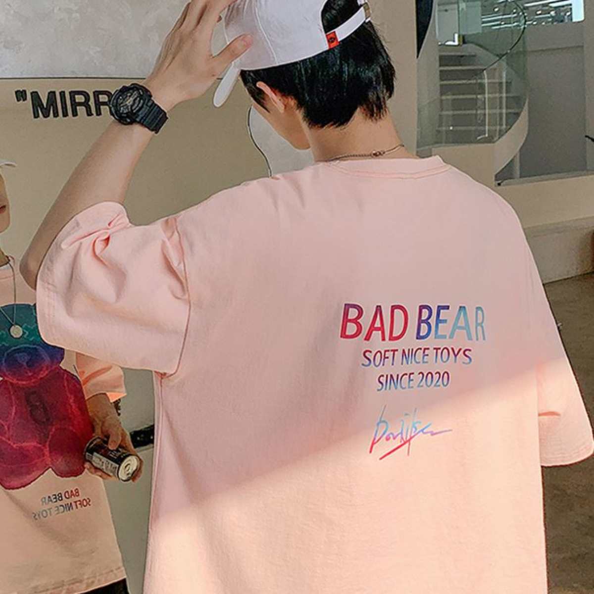 くまグラデプリントTシャツ メンズ クマ ストリート 半袖 トップス Tシャツ ストリートファッショ