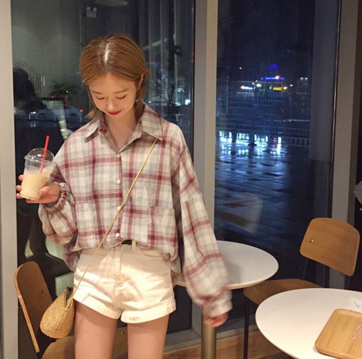 レディース チェックシャツ ビッグシルエット オルチャン 韓国ファッション オーバーサイズ チェック