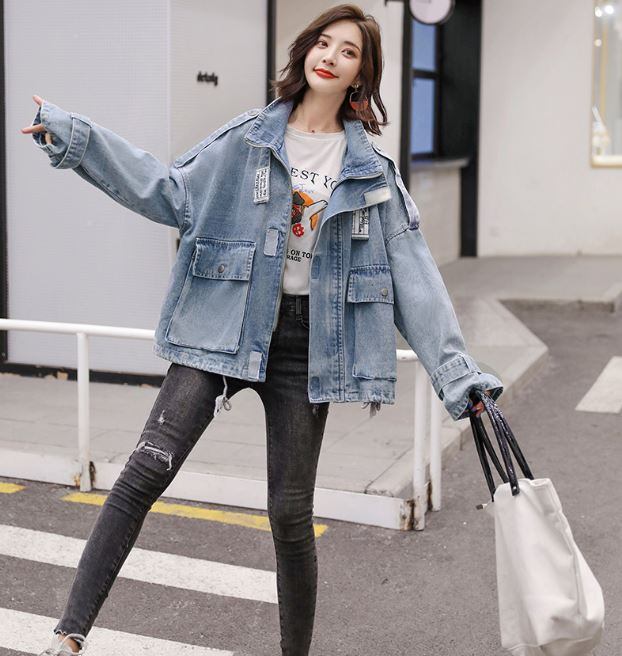 レディース デニムジャケット/ビッグサイズ スタンド衿 ドロップショルダー ジップブルゾン