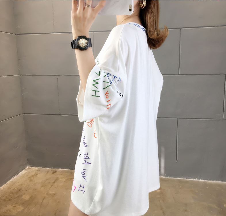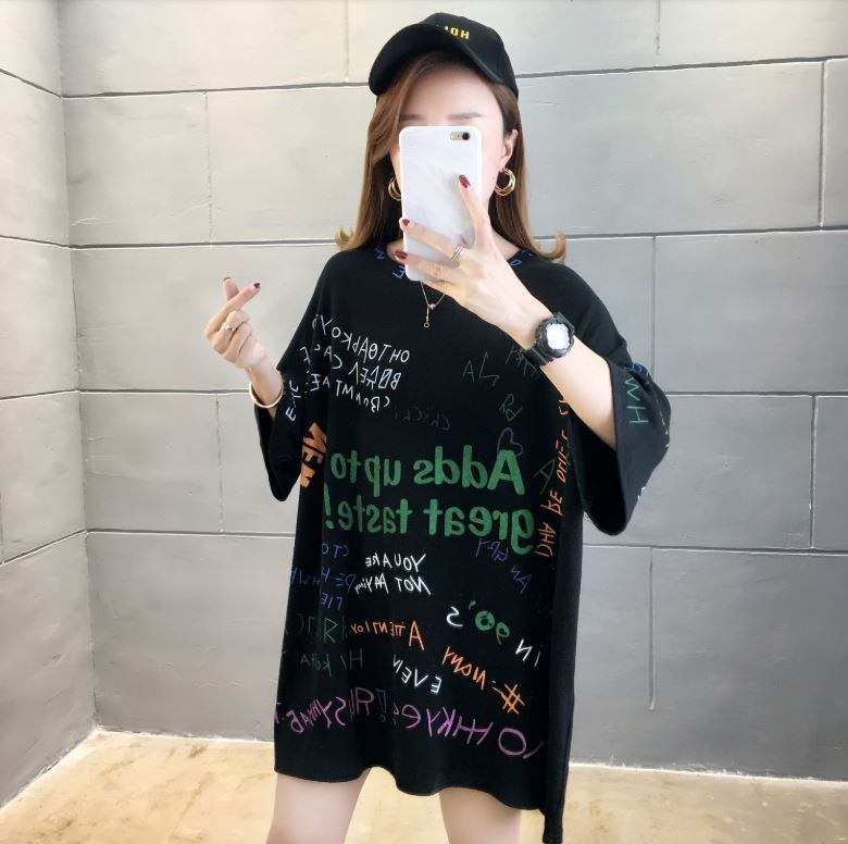 ロゴ総柄 半袖 ビッグTシャツ レディース 韓国ファッション 夏 ストリート カットソー カジュアル