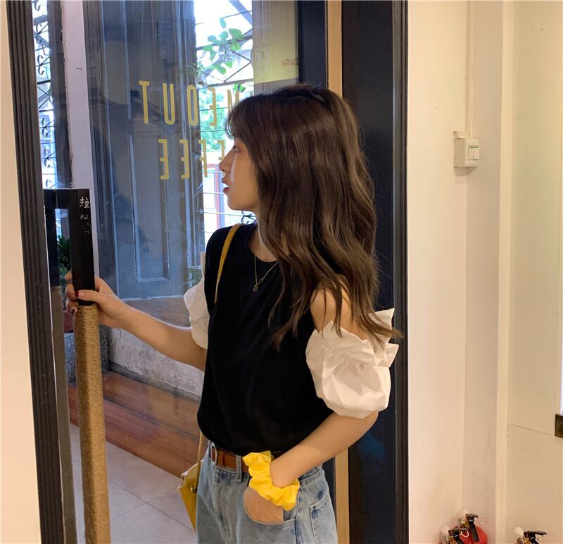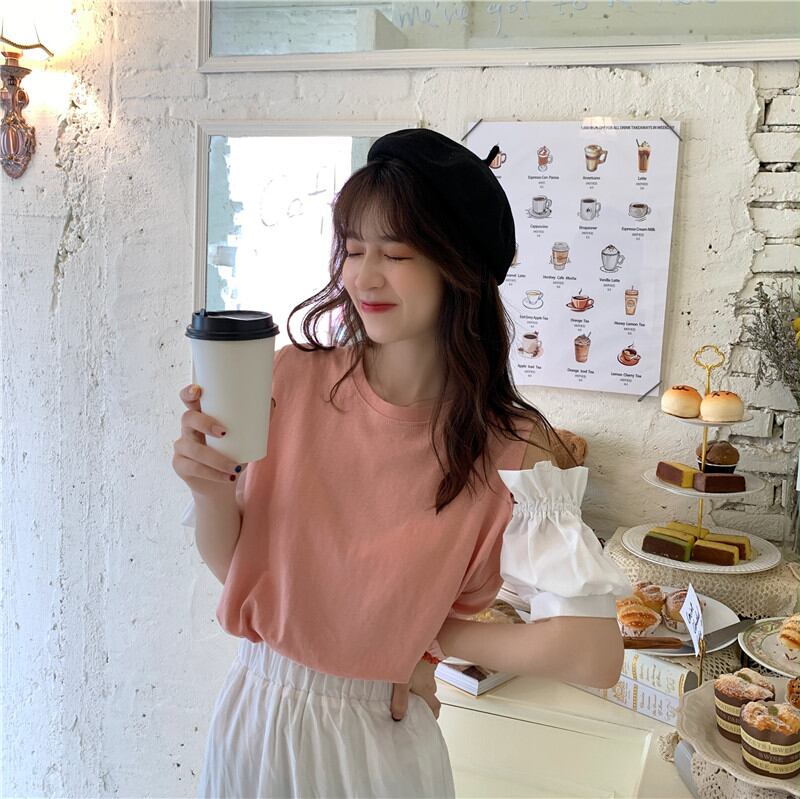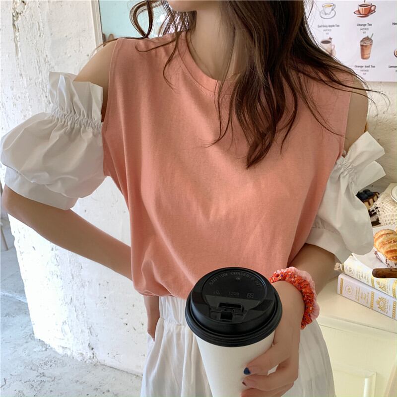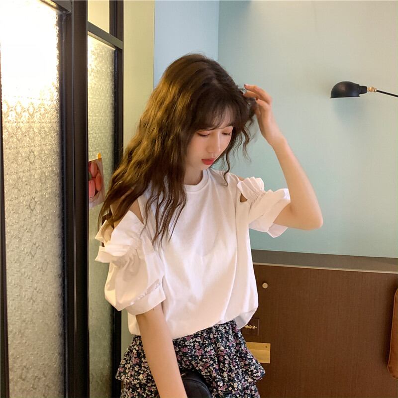 フリル袖 Tシャツ 韓国ファッション カットソー ガーリーカジュアル