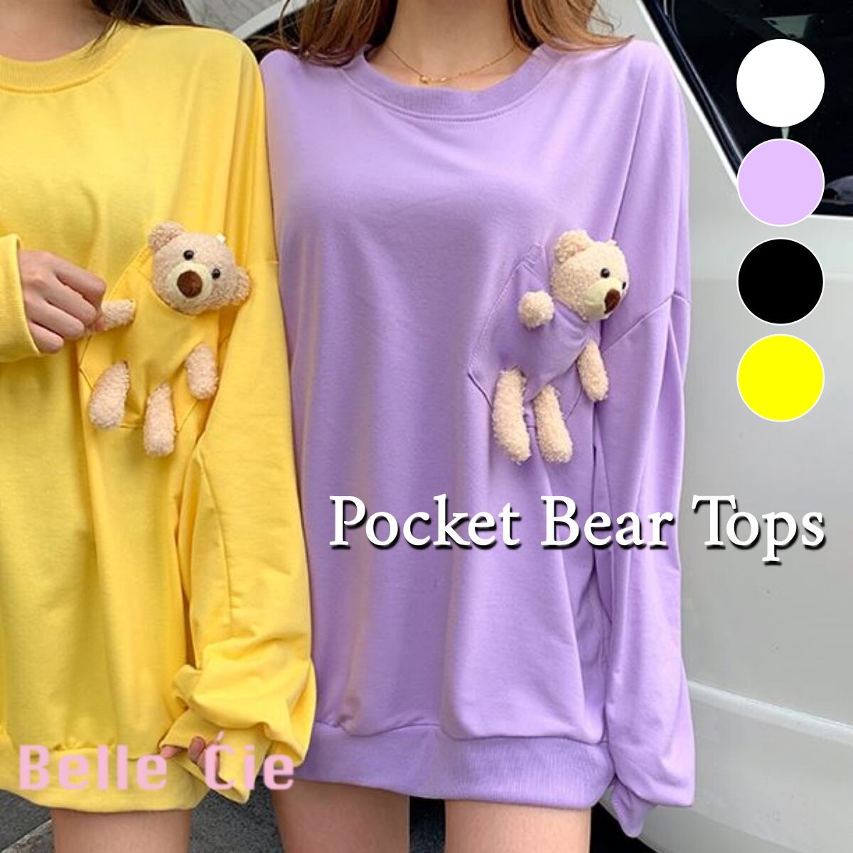 くまポケットビッグT スウェット 長袖 ベアー 熊 トレーナー オーバーサイズ 人形