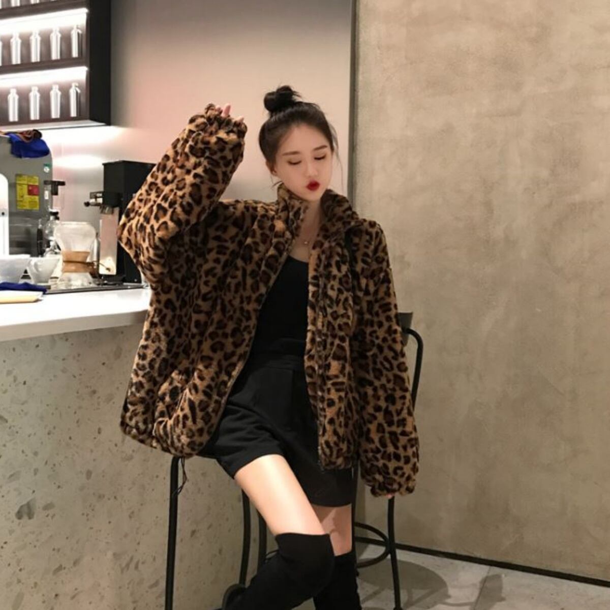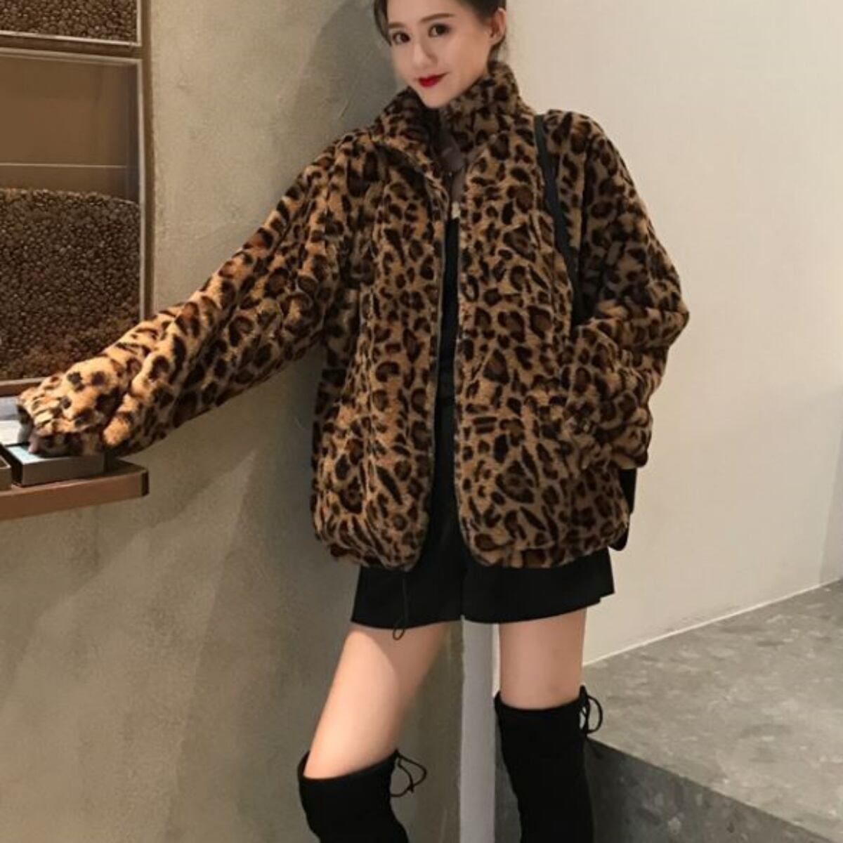レオパードファーブルゾン レディース アウター ヒョウ柄 シールファーフリース 韓国ファッション 裏