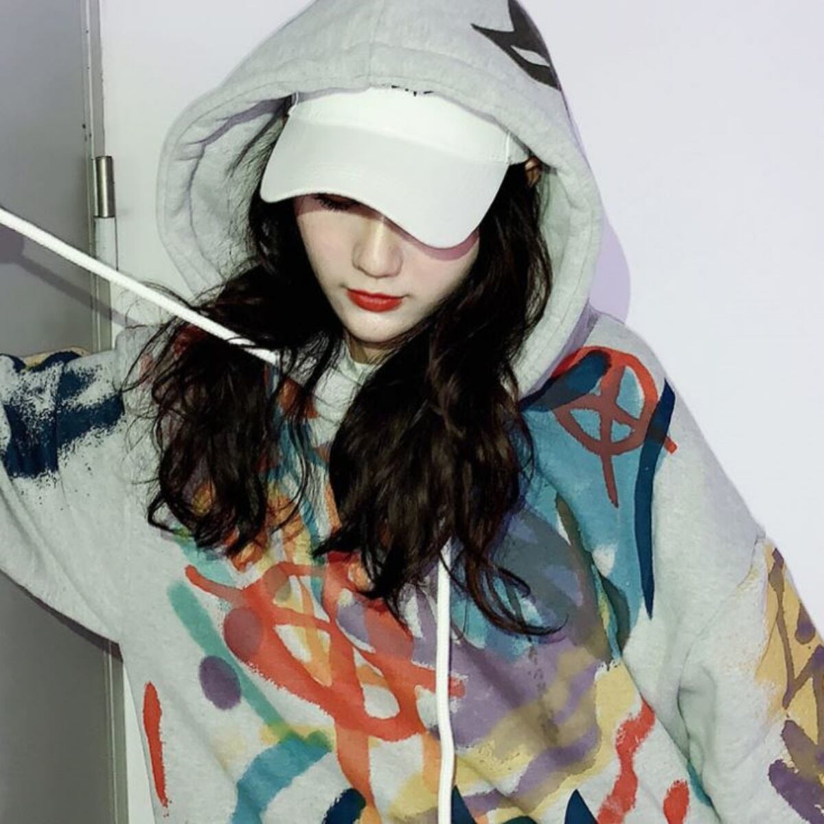 ペイント ビッグパーカー 韓国ファッション レディース パーカー 裏起毛 グレー 白 オーバーサイズ