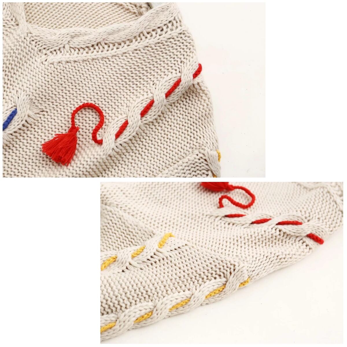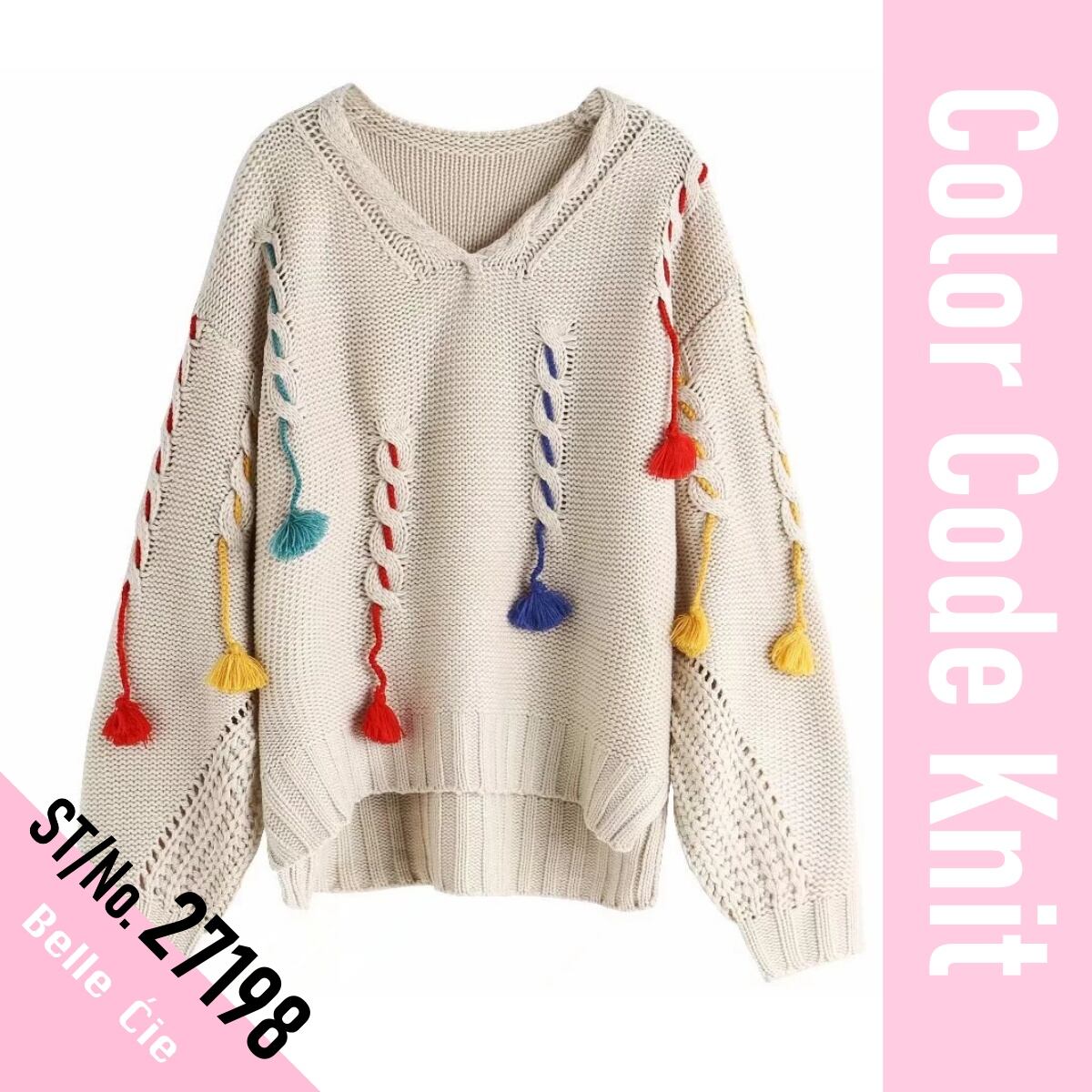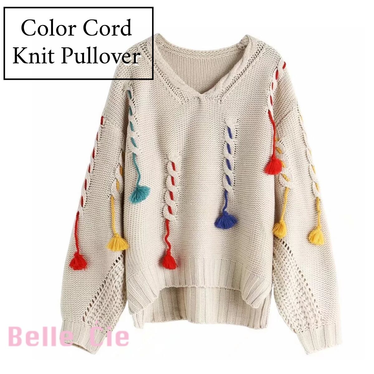 カラフルケーブルニットプルオーバー セーター レディース Vネック