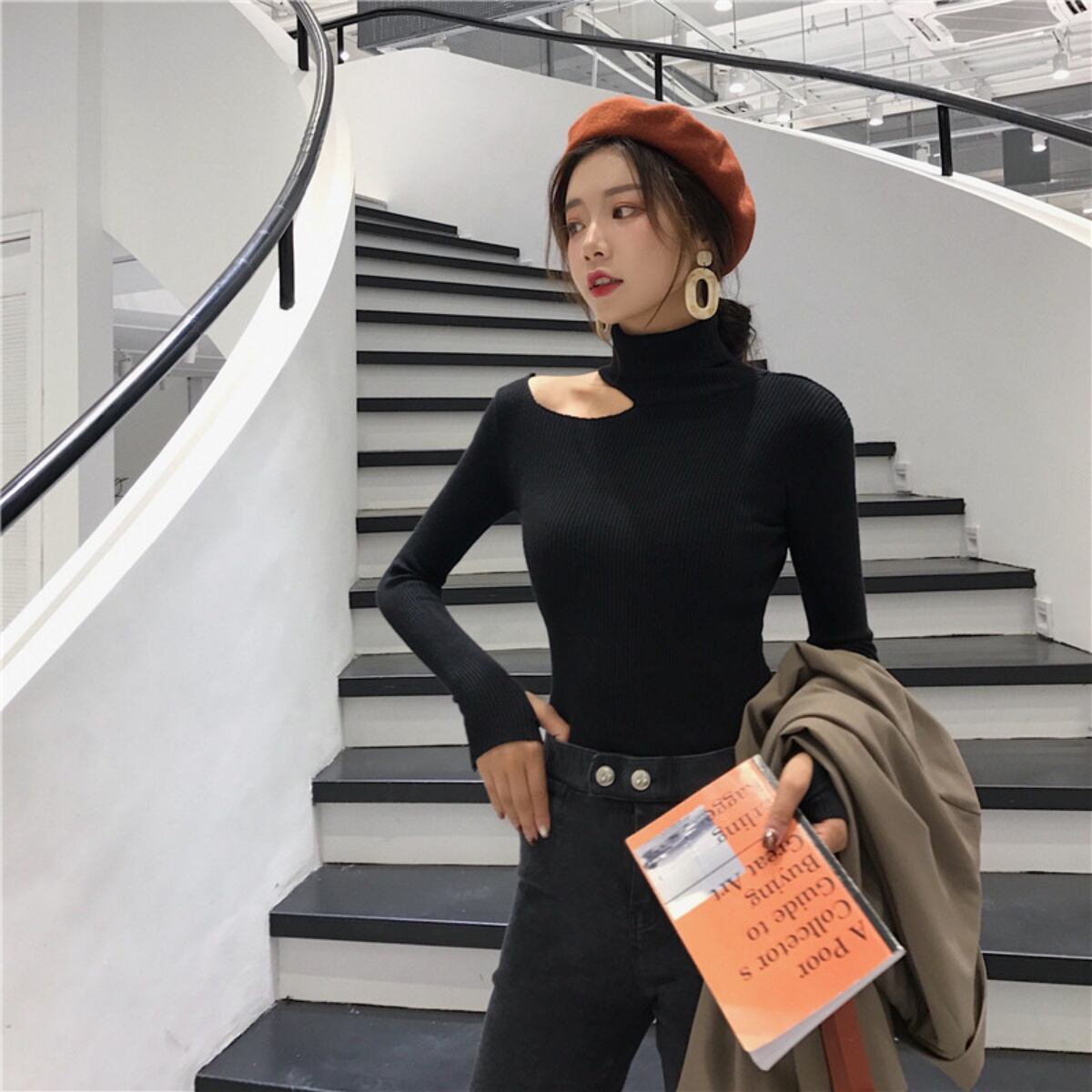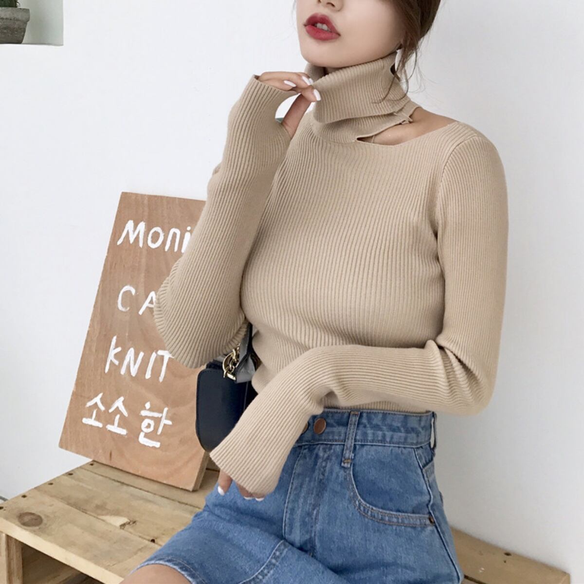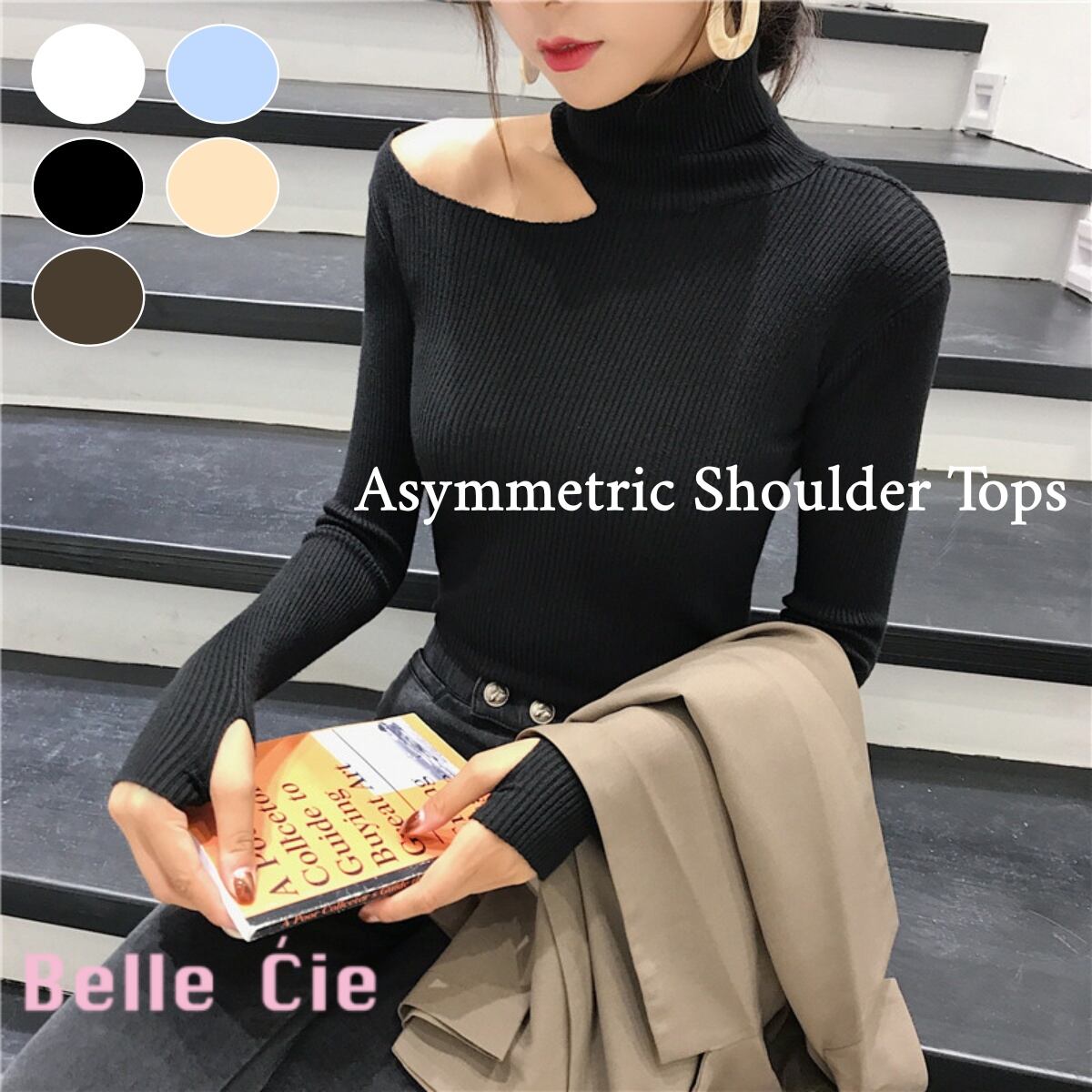 リブ編みテレコ トップス レディース アシンメトリーショルダー カットソー 長袖Tシャツ アシメ タ