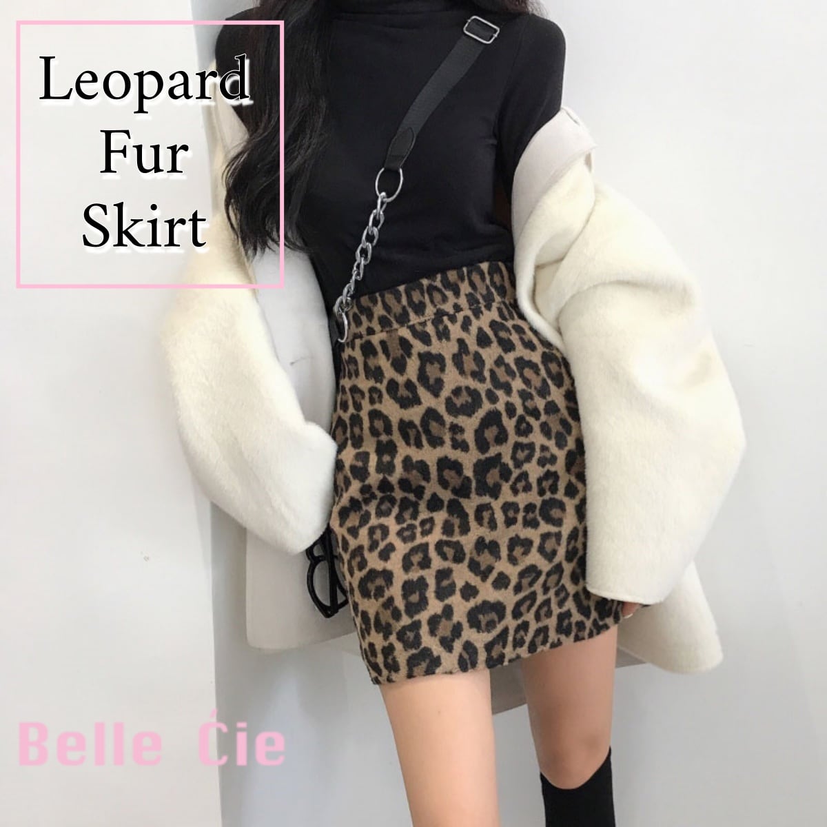 レオパードミニスカート シールファー アニマル ヒョウ柄 台形スカート タイトスカート ひょう 韓国