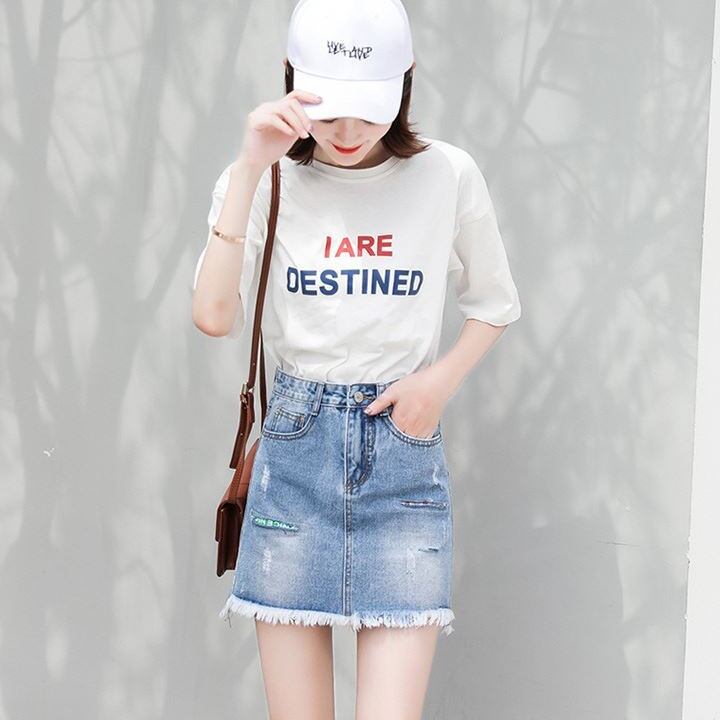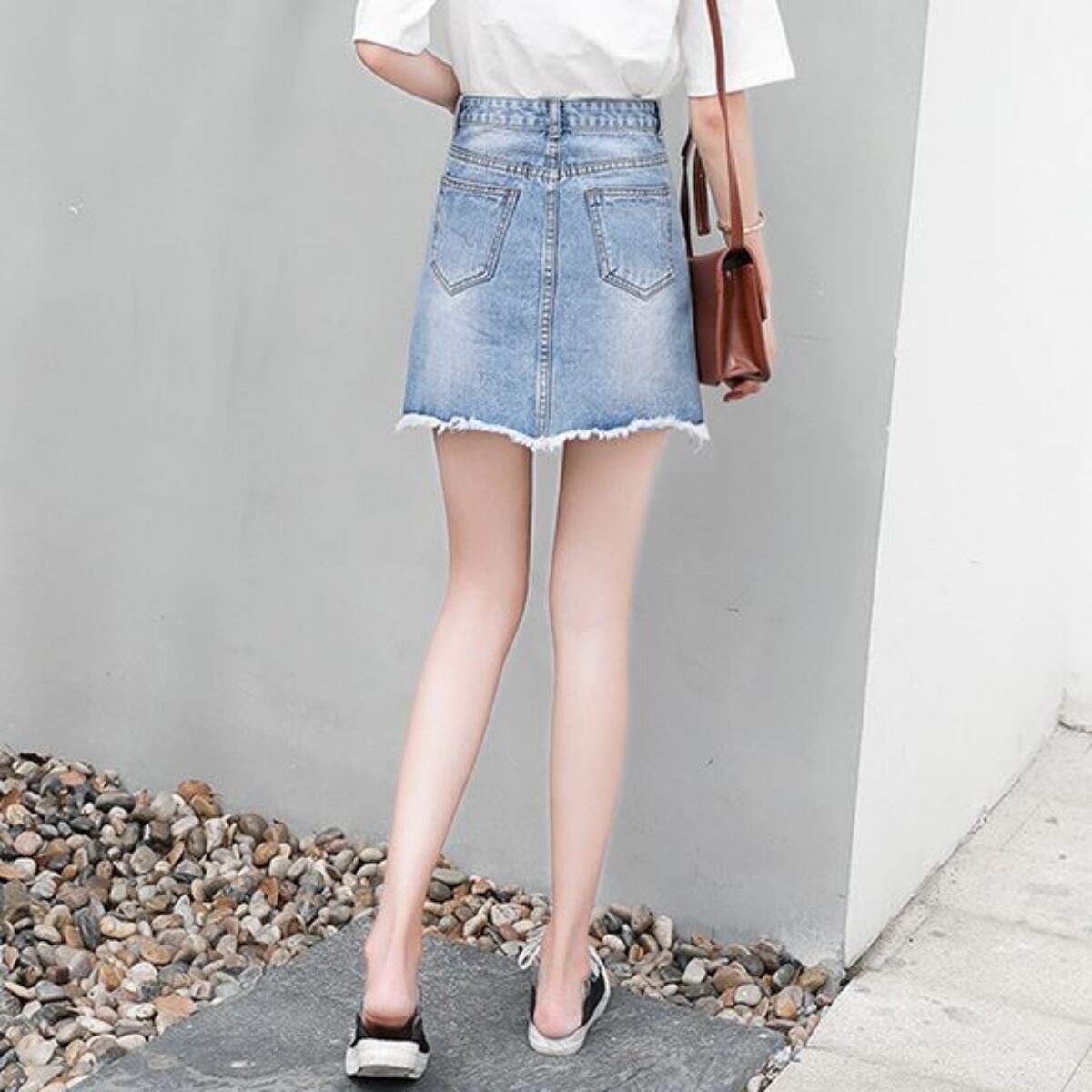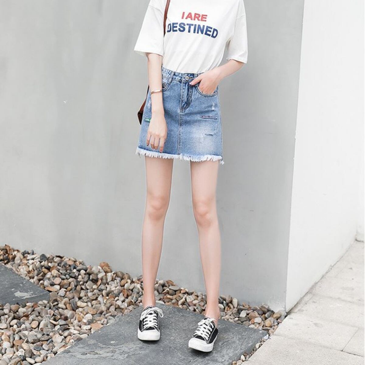 ダメージ デニム ミニスカート レディース カットオフ 韓国ファッション 切りっぱなし裾 台形スカー