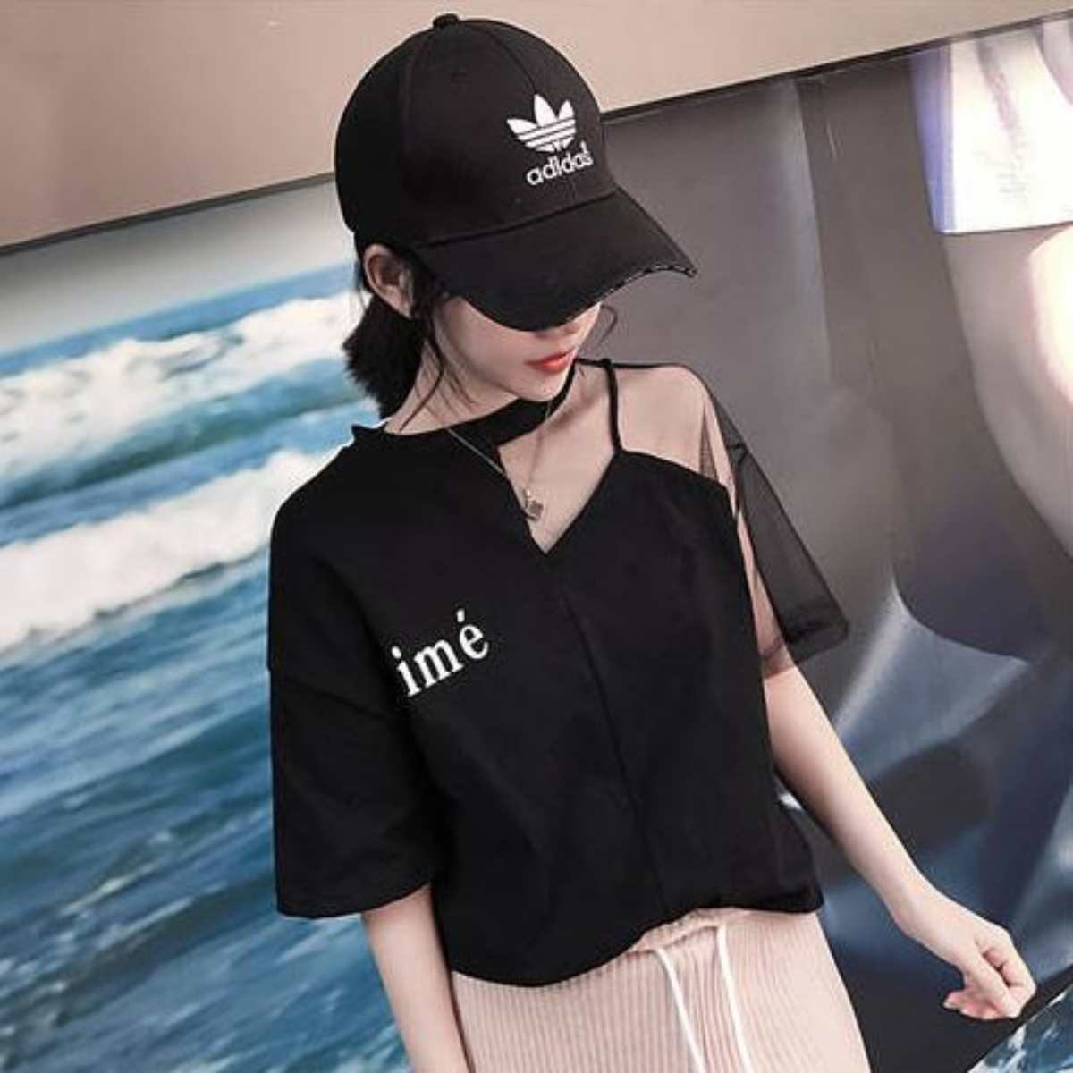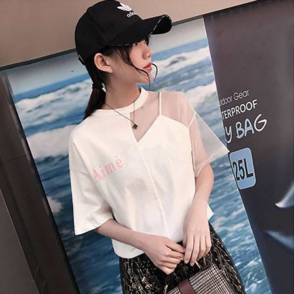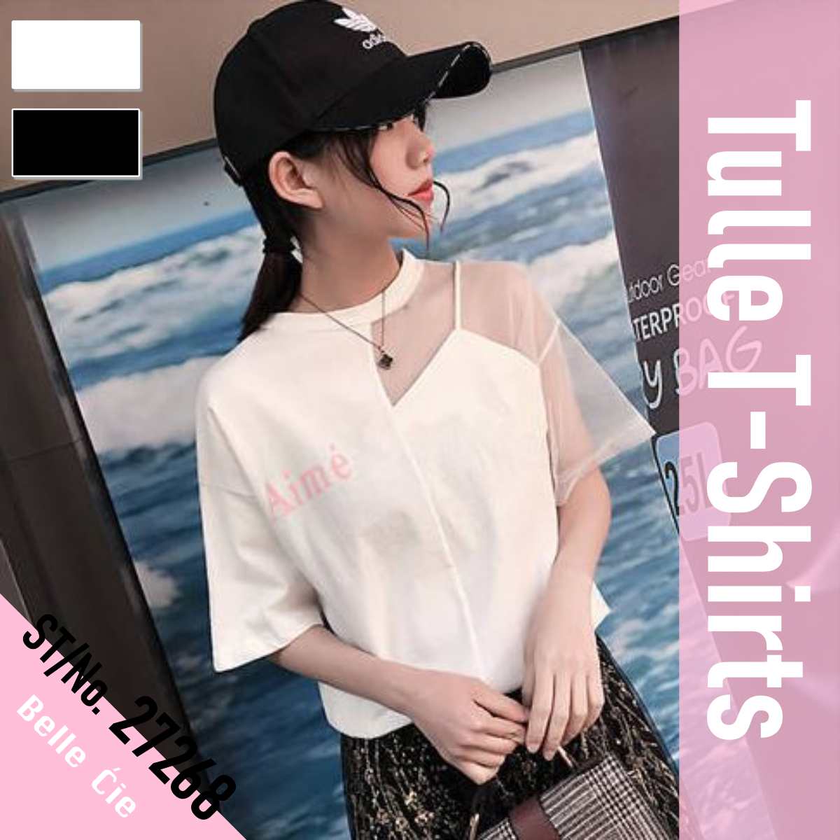 チュール切り替えTシャツ レディース韓国ファッション チュールレース 透け素材 半袖 トップス 春夏