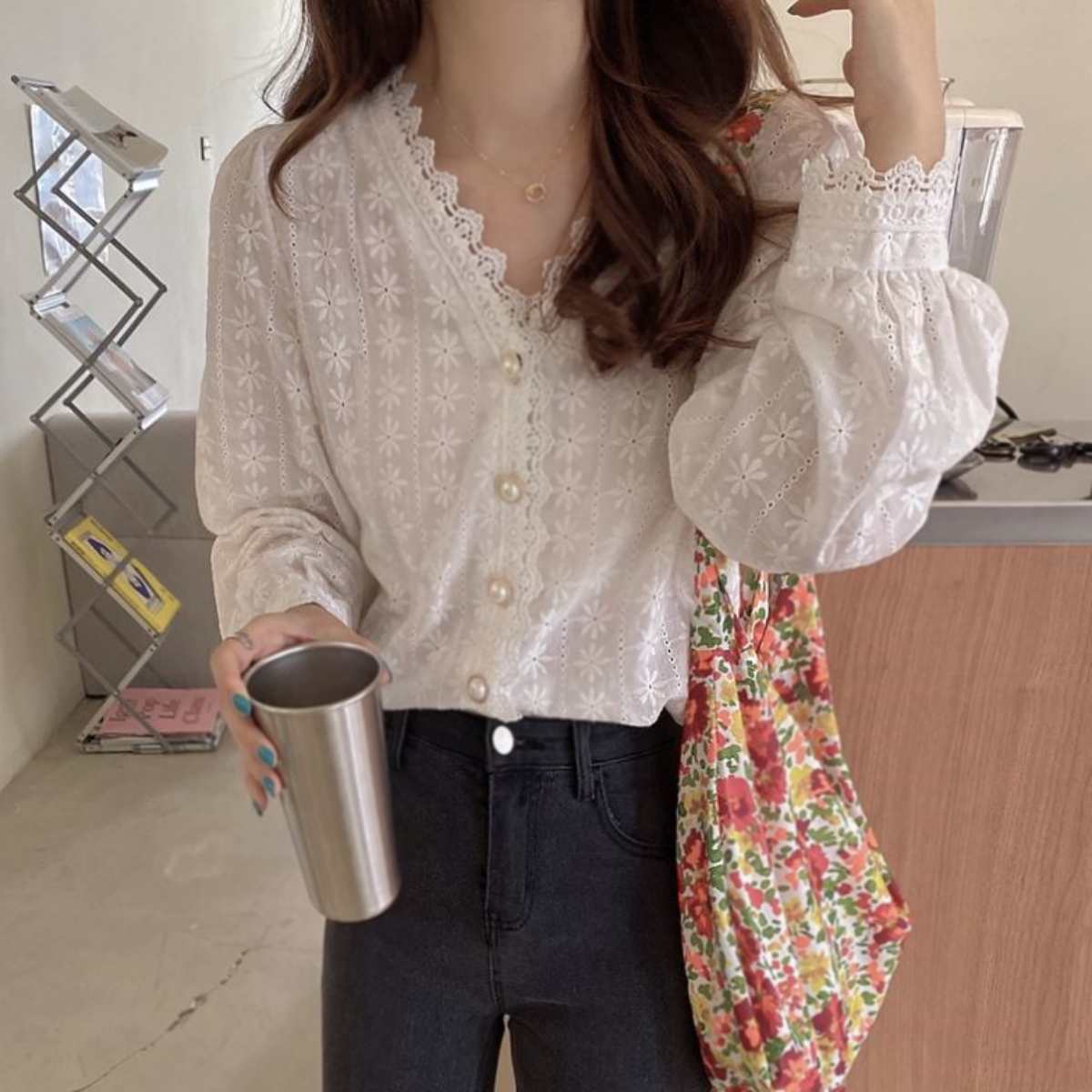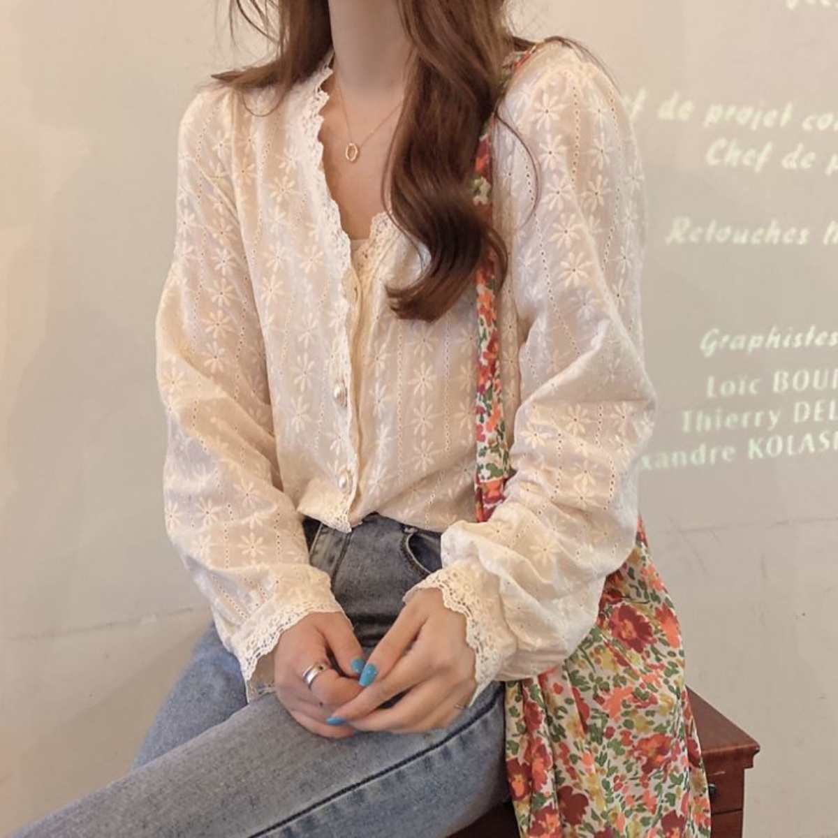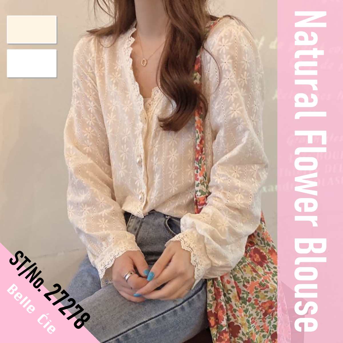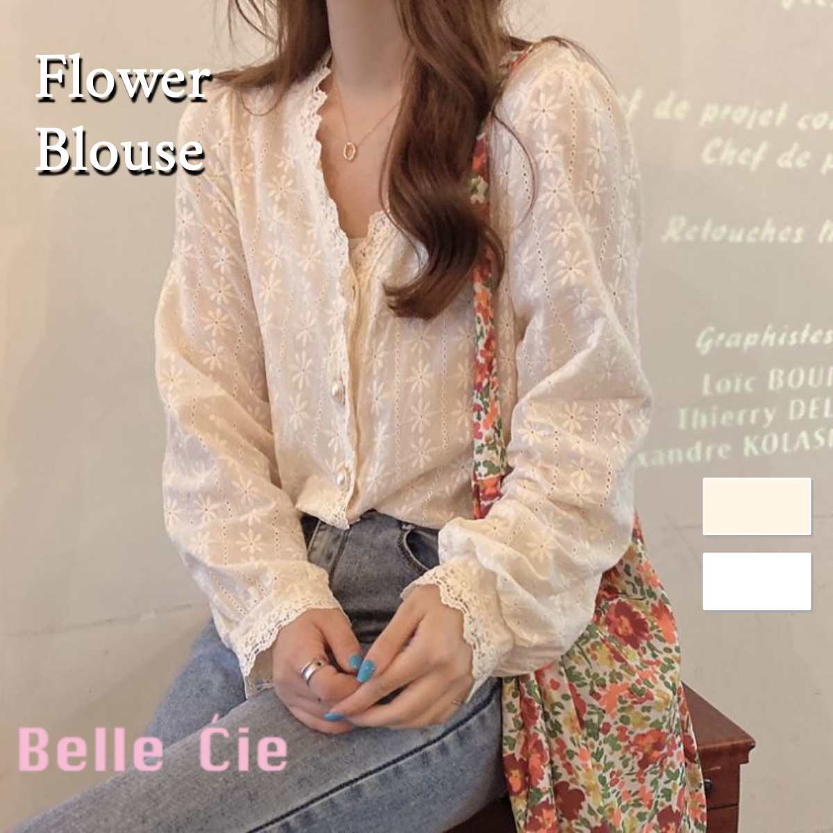 フラワー刺繍スモックブラウス レディース 春 夏 ガーリー フェミニン トップス