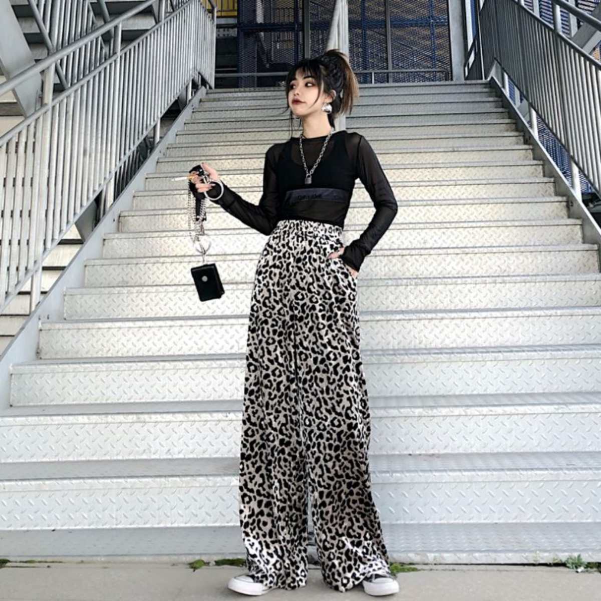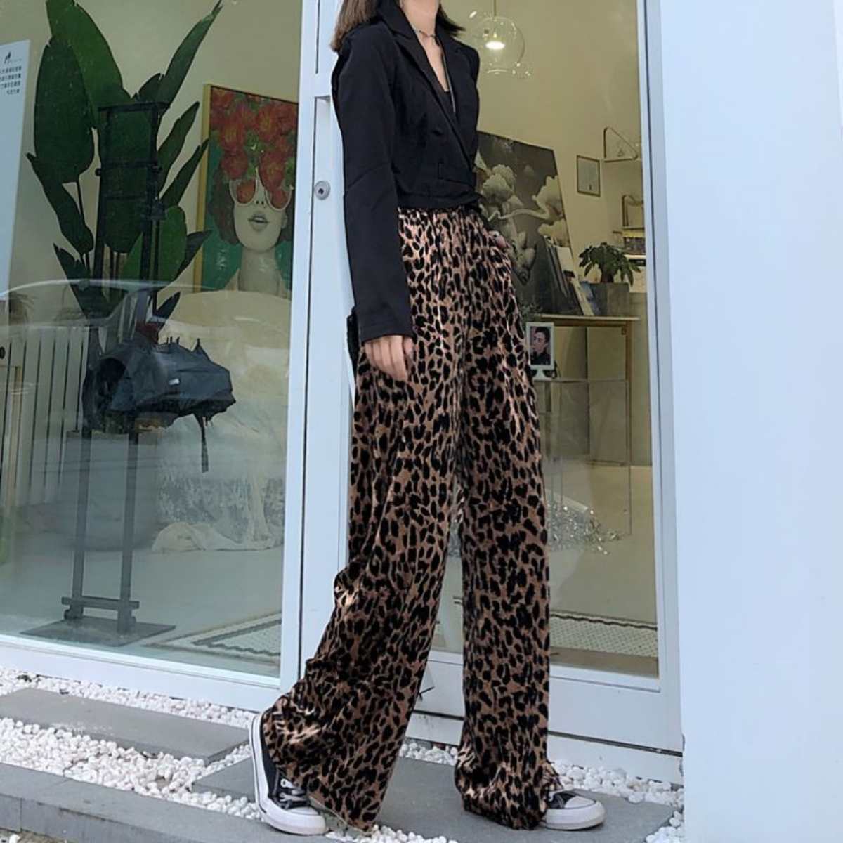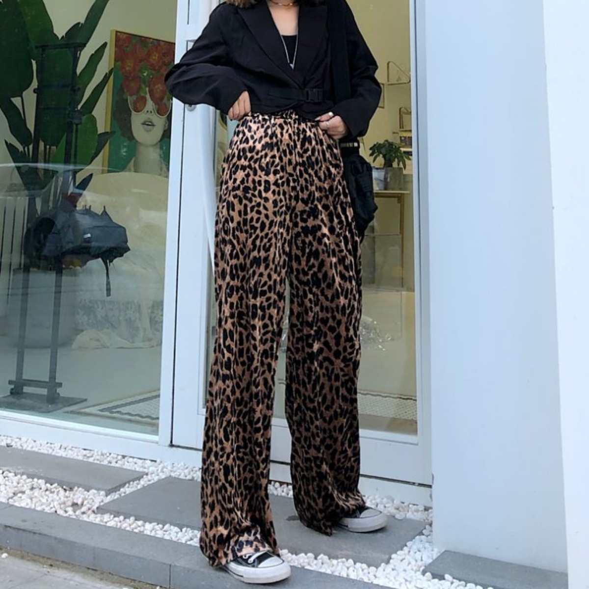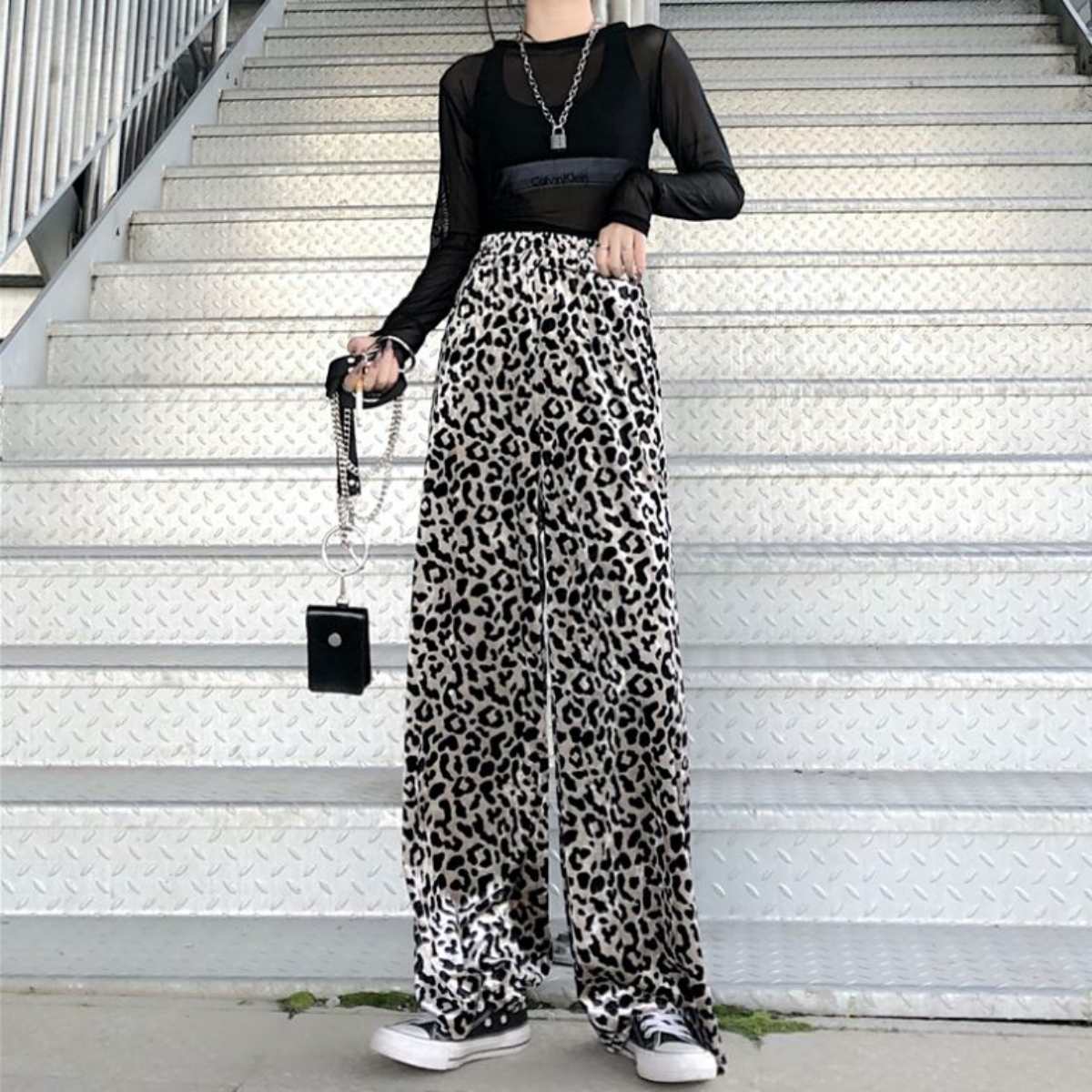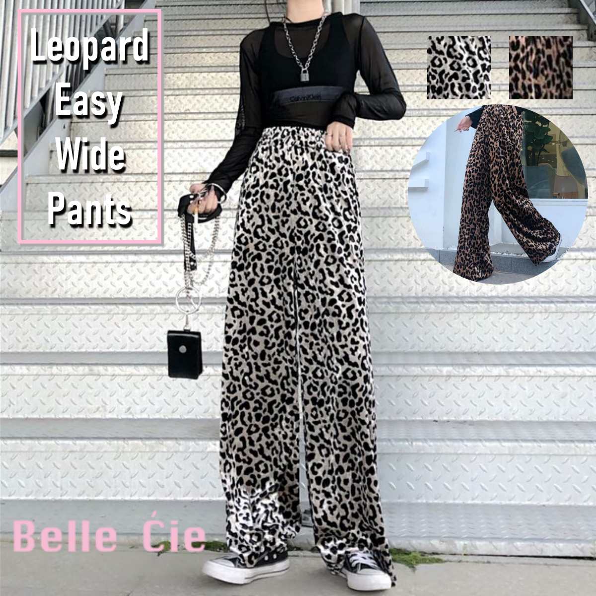 レオパード ワイドパンツ イージーパンツ レディース ワイド ヒョウ柄 ウエストゴム 柄物 豹柄 フ
