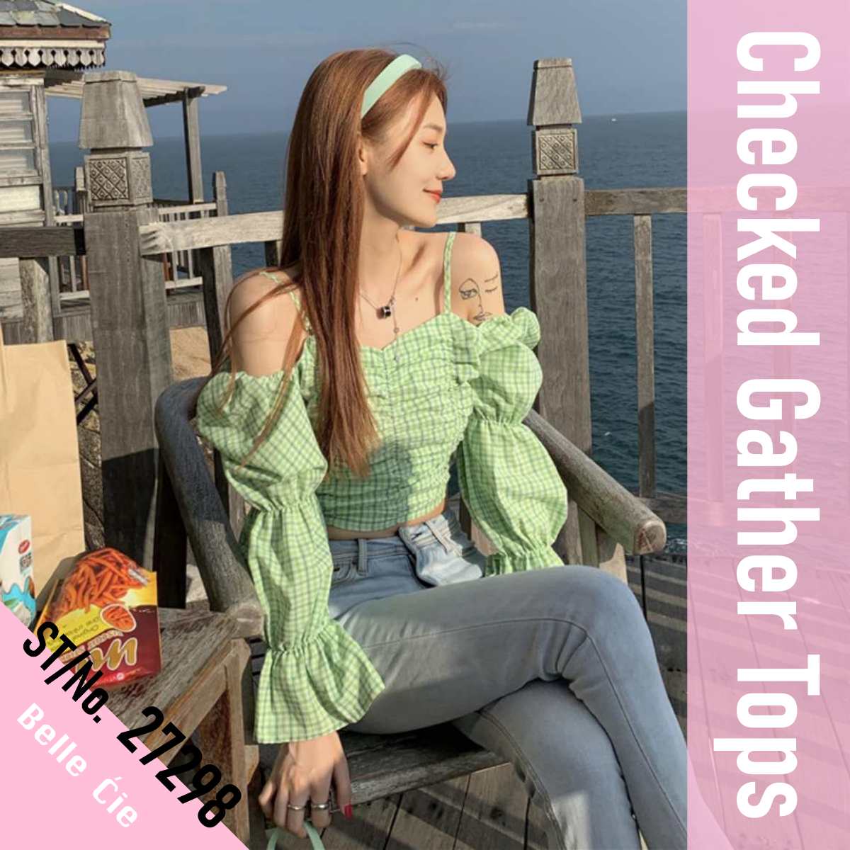 シャーリングギャザーオフショルトップス 韓国ファッション レディース トップス ベルシー 20代 3