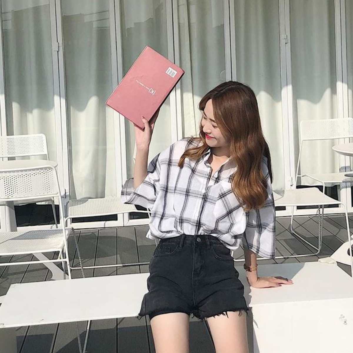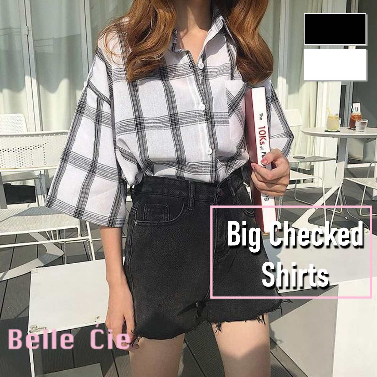 モノトーンチェック ビッグシャツ レディース 半袖シャツ 韓国ファッション ベルシー 夏服