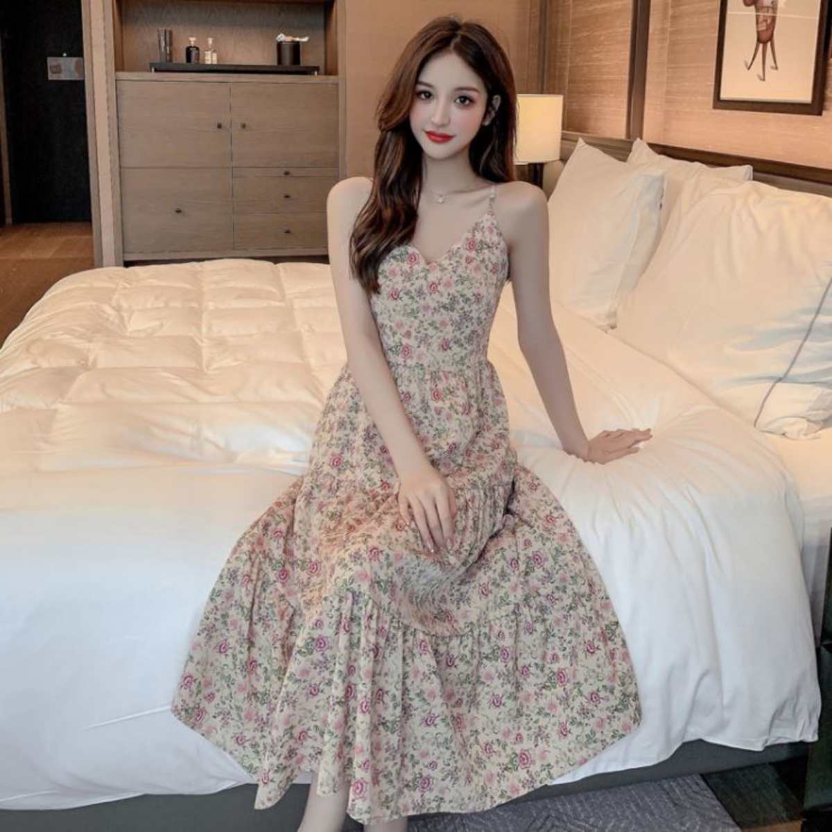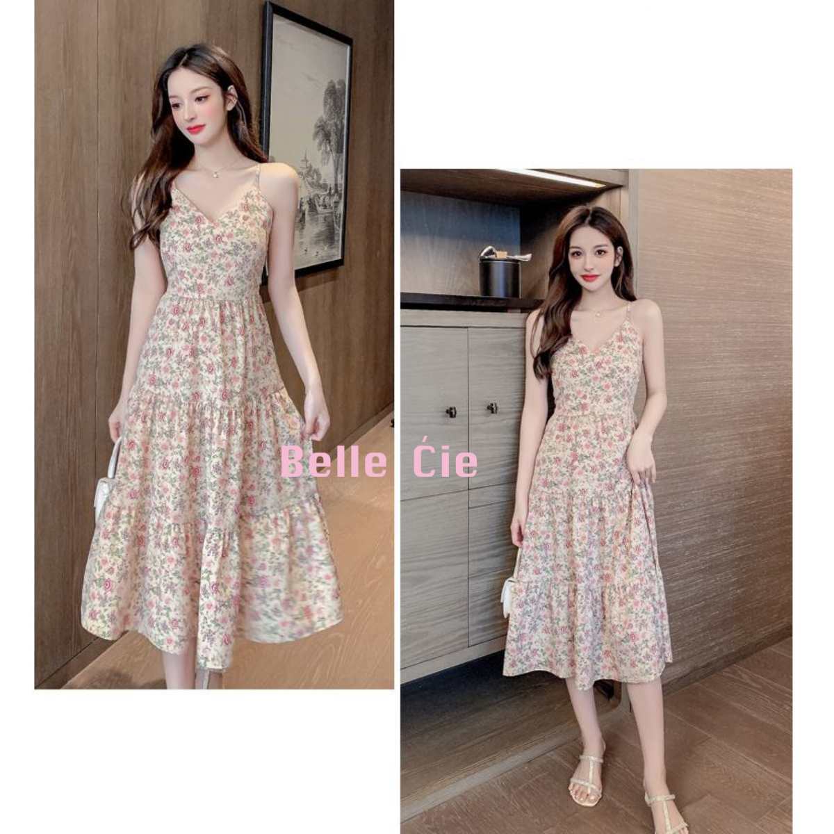 花柄シフォンワンピース レディース ロングワンピ キャミワンピ フラワー 韓国ファッション ベルシー