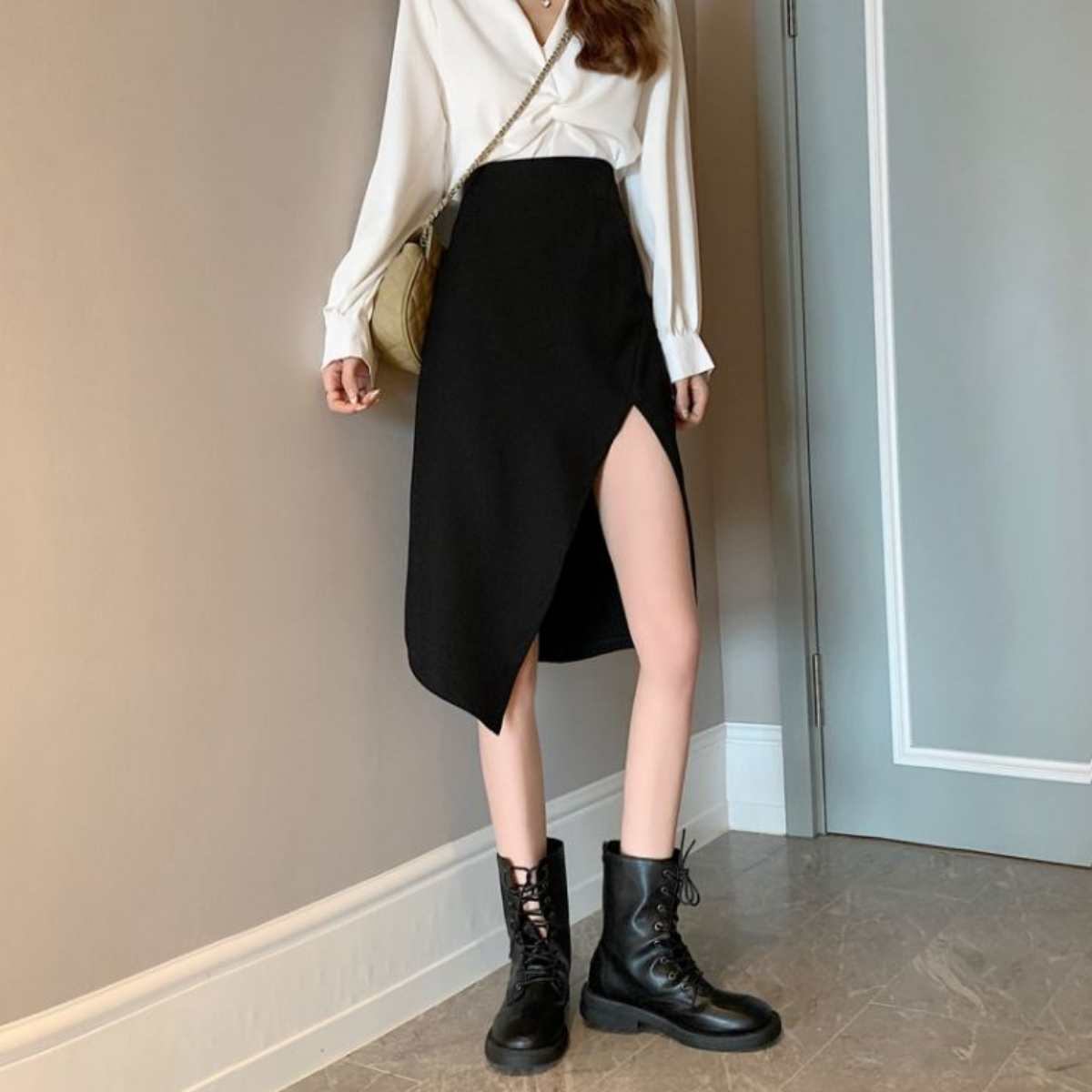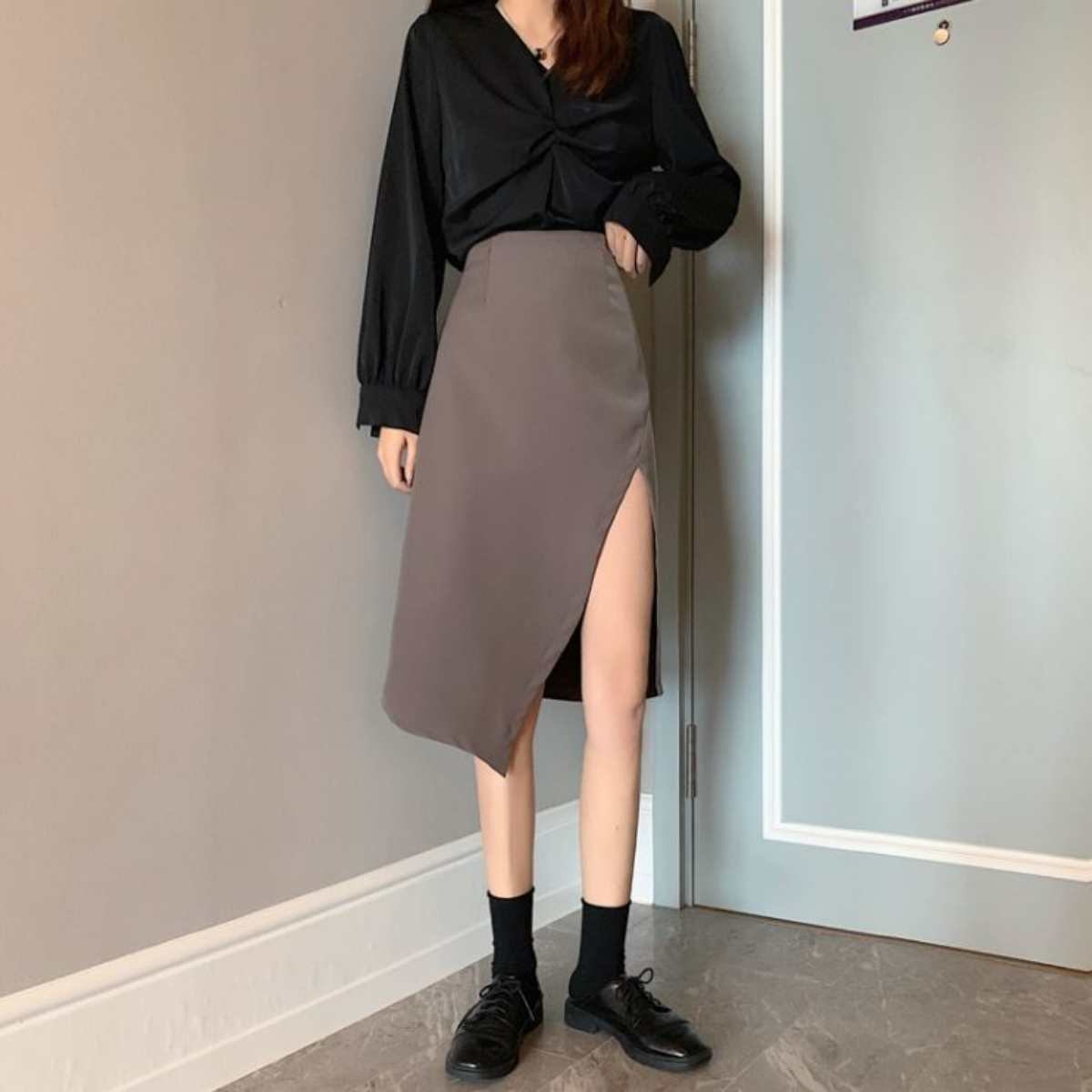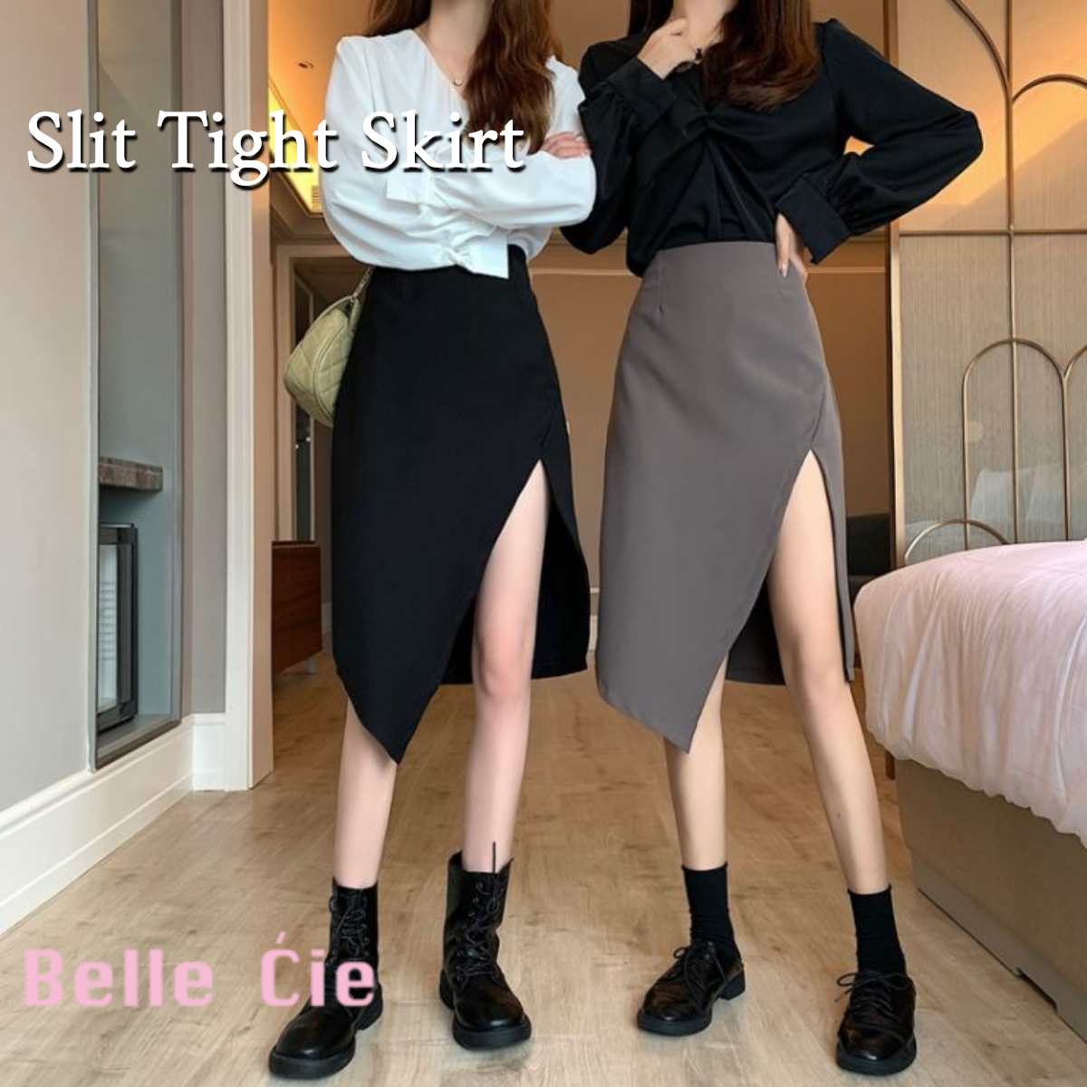 スリットタイトスカート アシンメトリー レディース セクシー ミモレ丈 韓国ファッション セクシー